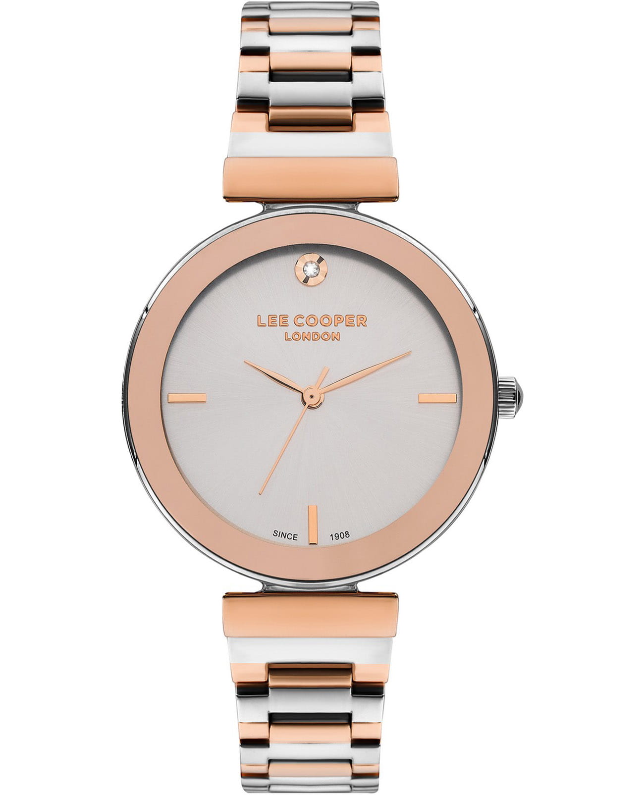 Женские часы Lee Cooper LC07711.530 — это стильное сочетание элегантности и современного дизайна. Круглый корпус диаметром 35 мм выполнен из суперметалла серебристого цвета. Неподвижный безельБезельВнешний ободок, закрепляющий стекло. В спортивных часах так называется поворотное кольцо с делениями на циферблате, выполняет роль таймера – замеряет отрезки времени на шкале. Неподвижный безель – элемент декора. Однонаправленно вращающийся безель на дайверских часах позволяет фиксировать моменты погружения и выныривания на поверхность. с IP-покрытиемIP-покрытиеМетод ионного напыления. Демонстрирует повышенную устойчивость к истиранию, окислению и химическим веществам. Под воздействием высокого давления и температуры около 1500°C молекулы металла надёжно соединяются с частицами корпуса часов. золотого цвета придает модели особый блеск. Изысканный циферблат защищен минеральным стекломМинеральное стеклоМинеральное стекло представляет собой искусственно выращенный минерал кварца. Такое стекло отличается особой устойчивостью к повреждениям и царапинам. Уступает по некоторым качествам сапфировому стеклу., обеспечивающим устойчивость к царапинам. Метки в виде штрихов. Часы оснащены надежным кварцевым механизмом, а стальной браслет с частичным IP-покрытиемIP-покрытиеМетод ионного напыления. Демонстрирует повышенную устойчивость к истиранию, окислению и химическим веществам. Под воздействием высокого давления и температуры около 1500°C молекулы металла надёжно соединяются с частицами корпуса часов. на раскладной застёжкеРаскладная застёжкаТакой тип застёжки используется только на браслетах из металла. Она никогда не раскрывается полностью, происходит разделение на 2 и более частей. Раскладывающая застёжка снизит вероятность потери часов к минимуму. гарантирует комфортную посадку на запястье. Водозащита 30 метров защищает модель от случайных брызг и дождя. Lee Cooper  — отличный выбор для тех, кто ценит утонченность и качество.