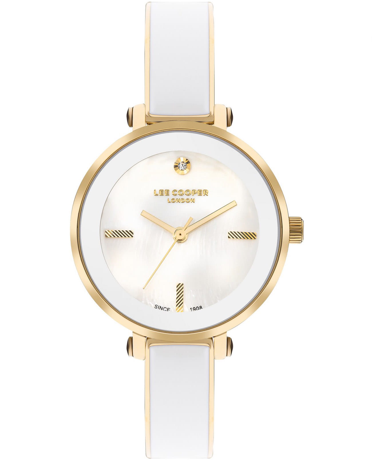 Женские часы Lee Cooper LC07813.120 выполнены в классическом стиле и сочетают строгий дизайн с надёжным механизмом. Модель оснащена кварцевым механизмом , обеспечивающим точность хода и минимальное обслуживание. Корпус круглой формы имеет размер 32 мм, изготовлен из суперметалла с IP-покрытиемIP-покрытиеМетод ионного напыления. Демонстрирует повышенную устойчивость к истиранию, окислению и химическим веществам. Под воздействием высокого давления и температуры около 1500°C молекулы металла надёжно соединяются с частицами корпуса часов., гарантирует комфорт при ношении. Циферблат перламутрового цвета дополнен индексами для чёткого отсчёта времени. Защиту циферблата обеспечивает минеральное стеклоМинеральное стеклоМинеральное стекло представляет собой искусственно выращенный минерал кварца. Такое стекло отличается особой устойчивостью к повреждениям и царапинам. Уступает по некоторым качествам сапфировому стеклу., устойчивое к мелким механическим повреждениям. Изысканный стальной браслет с керамическими вставками с IP-покрытиемIP-покрытиеМетод ионного напыления. Демонстрирует повышенную устойчивость к истиранию, окислению и химическим веществам. Под воздействием высокого давления и температуры около 1500°C молекулы металла надёжно соединяются с частицами корпуса часов. на раскладной застёжкеРаскладная застёжкаТакой тип застёжки используется только на браслетах из металла. Она никогда не раскрывается полностью, происходит разделение на 2 и более частей. Раскладывающая застёжка снизит вероятность потери часов к минимуму. гарантирует комфортную посадку на запястье. Водозащита 3 АТМ позволяет использовать часы в повседневных условиях без риска повреждения от случайных брызг воды. В комплекте к часам идет дополнительный браслет в цвет часов. Это сочетание классического дизайна, прочности материалов и качества исполнения для уверенных в себе женщин.