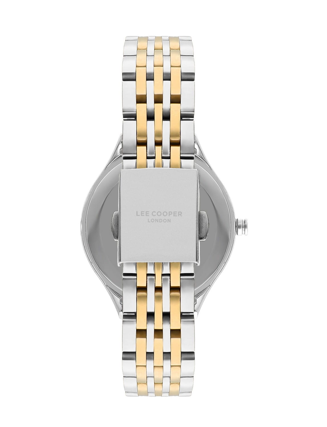 Женские часы Lee Cooper LC07821.220 выполнены в классическом стиле и сочетают строгий дизайн с надёжным механизмом. Модель оснащена кварцевым механизмом, обеспечивающим точность хода и минимальное обслуживание. Корпус круглой формы имеет размер 36 мм, изготовлен из суперметалла с изысканным неподвижным безелемБезельВнешний ободок, закрепляющий стекло. В спортивных часах так называется поворотное кольцо с делениями на циферблате, выполняет роль таймера – замеряет отрезки времени на шкале. Неподвижный безель – элемент декора. Однонаправленно вращающийся безель на дайверских часах позволяет фиксировать моменты погружения и выныривания на поверхность. с IP-покрытиемIP-покрытиеМетод ионного напыления. Демонстрирует повышенную устойчивость к истиранию, окислению и химическим веществам. Под воздействием высокого давления и температуры около 1500°C молекулы металла надёжно соединяются с частицами корпуса часов., гарантирует комфорт при ношении. Перламутровый циферблат дополнен штрихами для чёткого отсчёта времени. Защиту циферблата обеспечивает минеральное стеклоМинеральное стеклоМинеральное стекло представляет собой искусственно выращенный минерал кварца. Такое стекло отличается особой устойчивостью к повреждениям и царапинам. Уступает по некоторым качествам сапфировому стеклу., устойчивое к мелким механическим повреждениям. Стальной браслет с частичным IP-покрытиемIP-покрытиеМетод ионного напыления. Демонстрирует повышенную устойчивость к истиранию, окислению и химическим веществам. Под воздействием высокого давления и температуры около 1500°C молекулы металла надёжно соединяются с частицами корпуса часов. на раскладной застёжкеРаскладная застёжкаТакой тип застёжки используется только на браслетах из металла. Она никогда не раскрывается полностью, происходит разделение на 2 и более частей. Раскладывающая застёжка снизит вероятность потери часов к минимуму. гарантирует удобную посадку и надёжную фиксацию на запястье. Водозащита 30WR позволяет использовать часы в повседневных условиях без риска повреждения от случайных брызг воды. Это сочетание классического дизайна, прочности материалов и качества исполнения для уверенных в себе женщин.