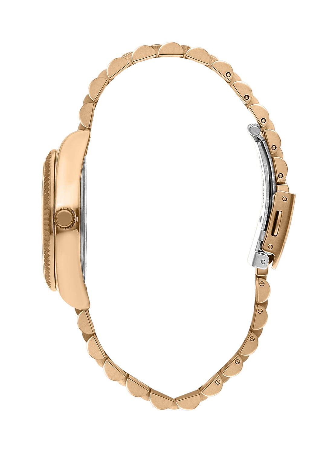 Женские часы Lee Cooper LC07825.420 выполнены в классическом стиле и сочетают строгий дизайн с надёжным механизмом. Модель оснащена кварцевым механизмом, обеспечивающим точность хода и минимальное обслуживание. Корпус имеет размер 36 мм, изготовлен из суперметалла с IP-покрытиемIP-покрытиеМетод ионного напыления. Демонстрирует повышенную устойчивость к истиранию, окислению и химическим веществам. Под воздействием высокого давления и температуры около 1500°C молекулы металла надёжно соединяются с частицами корпуса часов., гарантирует комфорт при ношении. Изящный циферблат дополнен штрихами и римскими цифрами для чёткого отсчёта времени. Защиту циферблата обеспечивает минеральное стеклоМинеральное стеклоМинеральное стекло представляет собой искусственно выращенный минерал кварца. Такое стекло отличается особой устойчивостью к повреждениям и царапинам. Уступает по некоторым качествам сапфировому стеклу., устойчивое к мелким механическим повреждениям. Стальной браслет с IP-покрытиемIP-покрытиеМетод ионного напыления. Демонстрирует повышенную устойчивость к истиранию, окислению и химическим веществам. Под воздействием высокого давления и температуры около 1500°C молекулы металла надёжно соединяются с частицами корпуса часов. на раскладной застёжкеРаскладная застёжкаТакой тип застёжки используется только на браслетах из металла. Она никогда не раскрывается полностью, происходит разделение на 2 и более частей. Раскладывающая застёжка снизит вероятность потери часов к минимуму. гарантирует удобную посадку и надёжную фиксацию на запястье. Стрелки с люминесцентным покрытиемЛюминесцентное покрытиеПозволяет считывать показания времени в темноте. Производители наносят на стрелки, часовые индексы, безель или поверхность циферблата светонакопительный состав, дающий холодное свечение., обеспечивающим хорошую читаемость в темноте. Водозащита 30WR позволяет использовать часы в повседневных условиях без риска повреждения от случайных брызг воды. Это сочетание классического дизайна, прочности материалов и качества исполнения для уверенных в себе женщин.