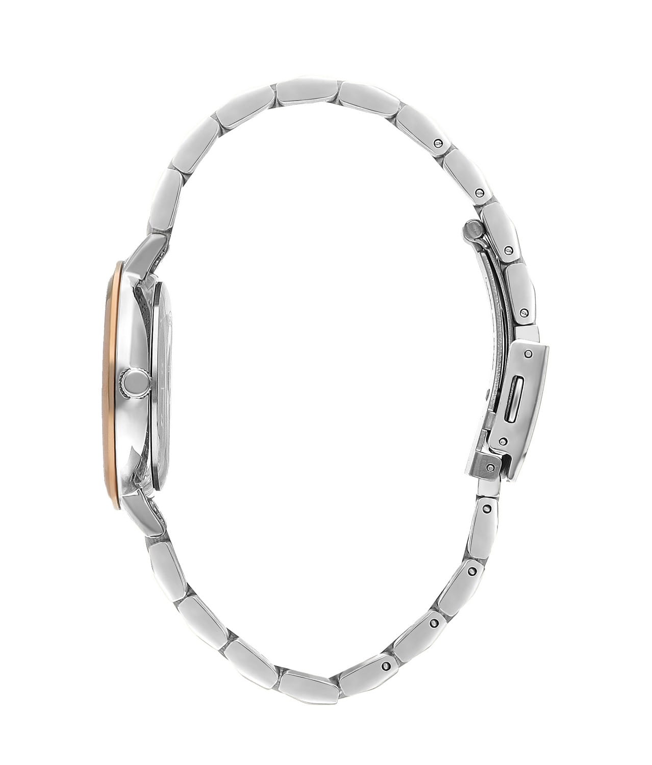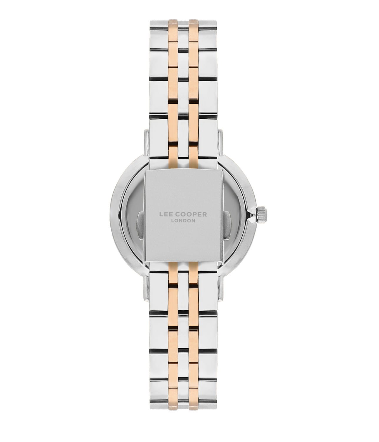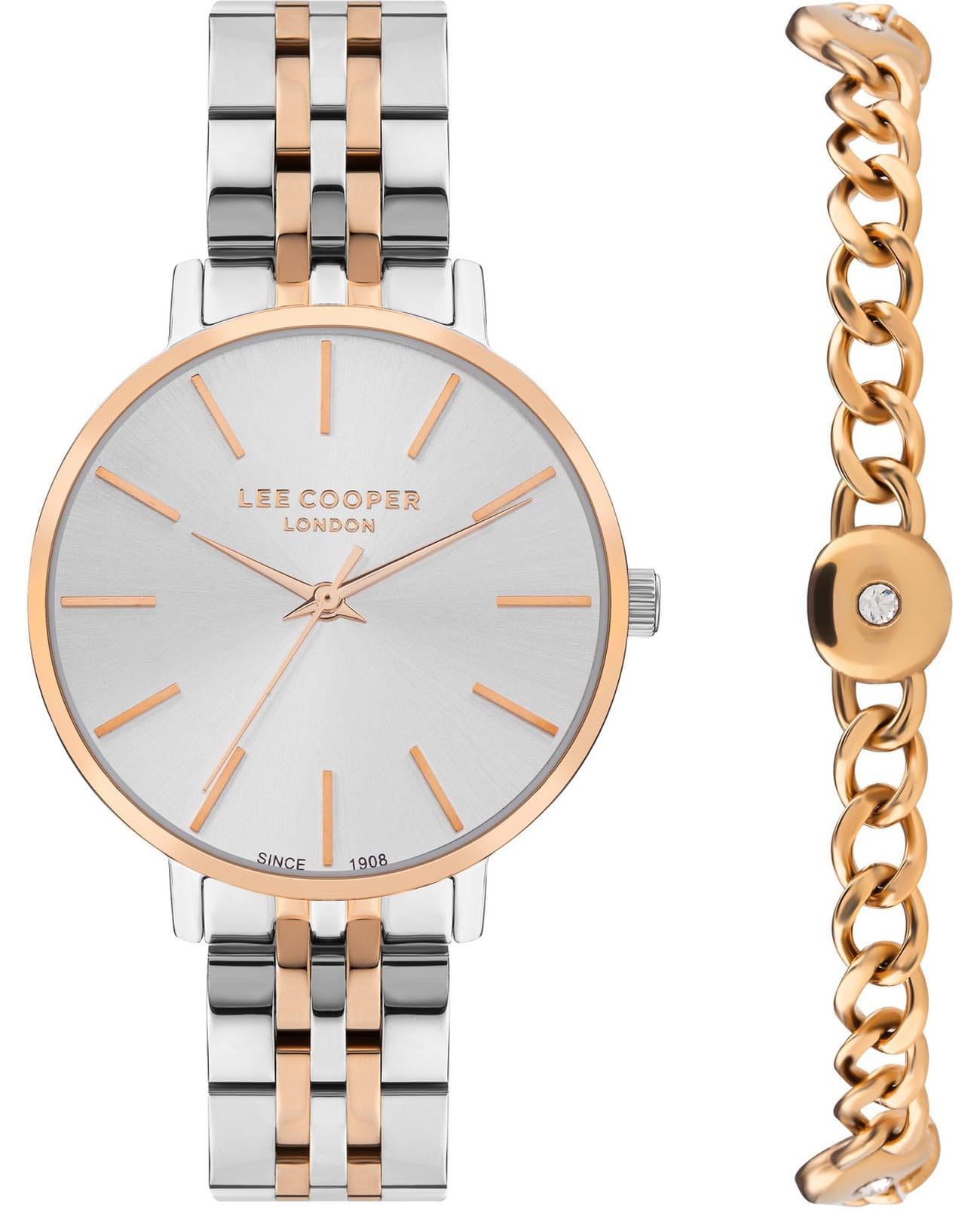 Женские часы Lee Cooper LC07857.530 — это стильное сочетание элегантности и современного дизайна. Изящный круглый корпус диаметром 34 мм выполнен из суперметалла с безелемБезельВнешний ободок, закрепляющий стекло. В спортивных часах так называется поворотное кольцо с делениями на циферблате, выполняет роль таймера – замеряет отрезки времени на шкале. Неподвижный безель – элемент декора. Однонаправленно вращающийся безель на дайверских часах позволяет фиксировать моменты погружения и выныривания на поверхность. с IP-покрытиемIP-покрытиеМетод ионного напыления. Демонстрирует повышенную устойчивость к истиранию, окислению и химическим веществам. Под воздействием высокого давления и температуры около 1500°C молекулы металла надёжно соединяются с частицами корпуса часов. золотого цвета, что придает модели особый блеск. Серебристый циферблат защищен минеральным стекломМинеральное стеклоМинеральное стекло представляет собой искусственно выращенный минерал кварца. Такое стекло отличается особой устойчивостью к повреждениям и царапинам. Уступает по некоторым качествам сапфировому стеклу., обеспечивающим устойчивость к царапинам. Метки в виде штрихов. Часы оснащены надежным кварцевым механизмом, а стальной браслет с частичным IP-покрытиемIP-покрытиеМетод ионного напыления. Демонстрирует повышенную устойчивость к истиранию, окислению и химическим веществам. Под воздействием высокого давления и температуры около 1500°C молекулы металла надёжно соединяются с частицами корпуса часов. на раскладной застёжкеРаскладная застёжкаТакой тип застёжки используется только на браслетах из металла. Она никогда не раскрывается полностью, происходит разделение на 2 и более частей. Раскладывающая застёжка снизит вероятность потери часов к минимуму. гарантирует комфортную посадку на запястье. Водозащита 30 метров защищает модель от случайных брызг и дождя. В комплекте к часам идет дополнительный браслет. Lee Cooper — отличный выбор для тех, кто ценит утонченность и качество.