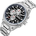 Мужские наручные часы Lee Cooper LC08026.360 — это стильная модель из коллекции Contemporary, сочетающая в себе современный дизайн и функциональность. Часы оснащены кварцевым механизмом японского производства, который обеспечивает высокую точность хода и минимальное энергопотребление. Корпус часов изготовлен из высококачественного суперметалла серебристого цвета, что делает их устойчивыми к внешним воздействиям и придает благородный вид. Черный циферблат украшен стрелками и индексами серебристого цвета, гармонично дополняющими общий дизайн модели. Для защиты циферблата используется минеральное стеклоМинеральное стеклоМинеральное стекло представляет собой искусственно выращенный минерал кварца. Такое стекло отличается особой устойчивостью к повреждениям и царапинам. Уступает по некоторым качествам сапфировому стеклу.,  устойчивое к царапинам и механическим повреждениям. Корпус имеет круглую форму с диаметром 45 мм, что делает часы заметными и подходящими для повседневной носки. Браслет изготовлен из металла серебристого цвета, гармонично дополняя общий дизайн модели. Модель обладает водонепроницаемостью до 50 метров (5 АТМ), что позволяет использовать часы в повседневной жизни, включая контакт с водой при мытье рук или дожде. Эти часы станут идеальным выбором для мужчин, ценящих стиль, качество и функциональность.