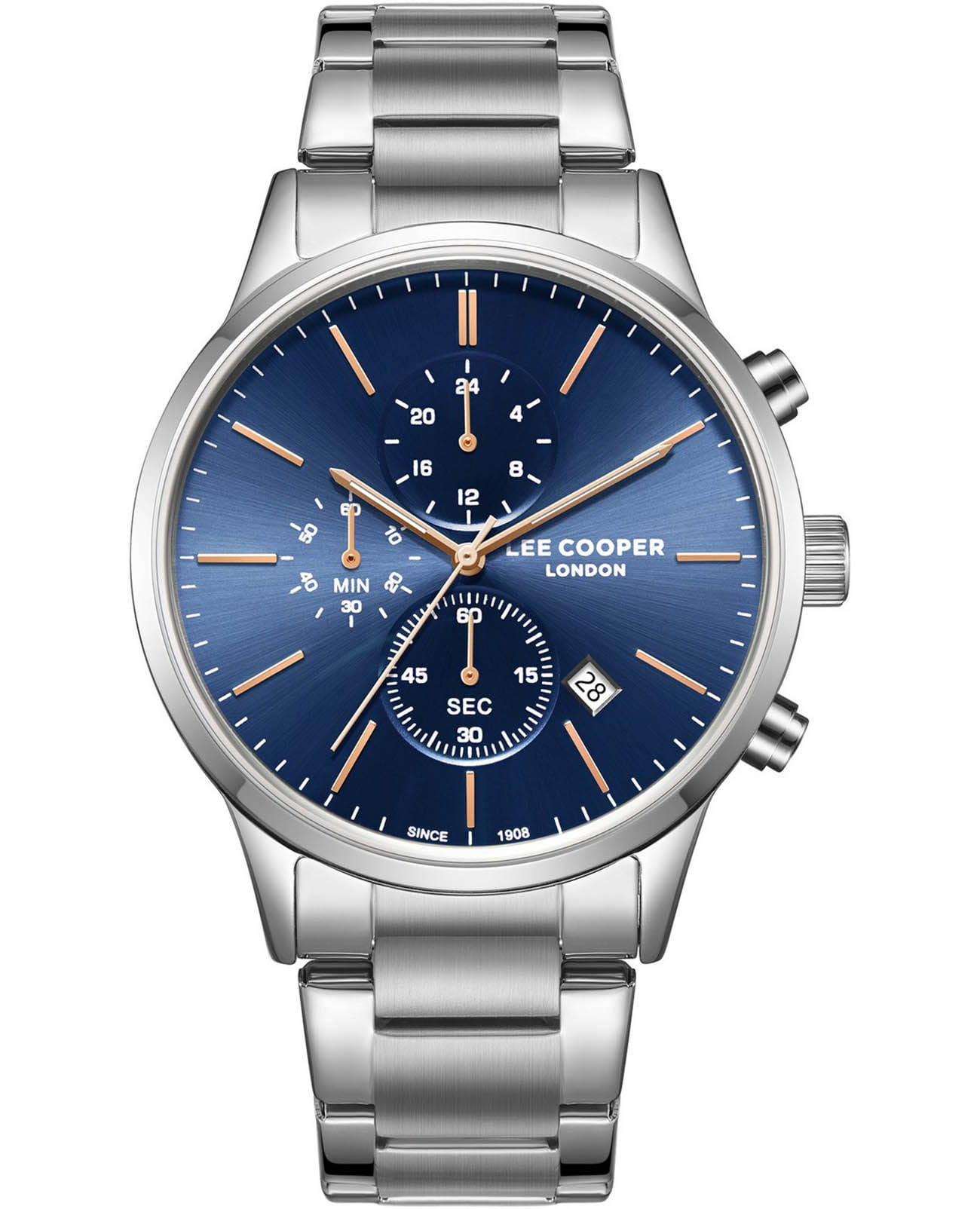 Мужские часы Lee Cooper LC08042.390 выполнены в классическом стиле и сочетают строгий дизайн с надёжным механизмом. Модель оснащена кварцевым механизмом , обеспечивающим точность хода. Корпус круглой формы имеет размер 43 мм , изготовлен из металла, браслет — стальной миланского плетения , что гарантирует комфорт при ношении. Циферблат синего цвета дополнен индексами , а также функциями отображения даты , дня недели , 24-часового индикатора и второго часового пояса второй часовой поясВторой часовой поясФункция, позволяющая отображать время двух часовых поясов одновременно.. Защиту циферблата обеспечивает минеральное стекло минеральное стеклоМинеральное стеклоМинеральное стекло представляет собой искусственно выращенный минерал кварца. Такое стекло отличается особой устойчивостью к повреждениям и царапинам. Уступает по некоторым качествам сапфировому стеклу., устойчивое к мелким механическим повреждениям — его можно легко отполировать при появлении царапин. Водозащита 5 АТМ позволяет использовать часы в повседневных условиях без риска повреждения от случайных брызг воды. Это сочетание классического дизайна, качества и функциональности для уверенных в себе мужчин.