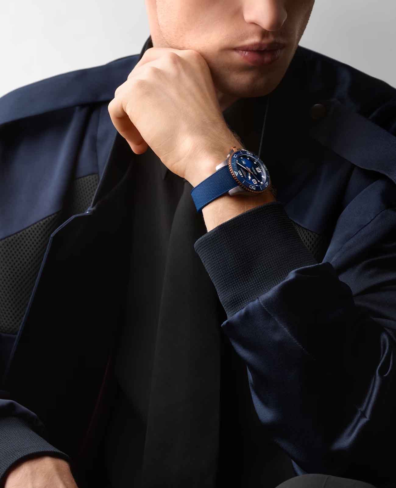 Мужские швейцарские механические часы для дайвинга Longines Hydroconquest L3.782.3.98.9. Сапфировое стеклоСапфировое стеклоПрочный и надёжный материал из кристалла сапфира синтетического происхождения, характеризующийся особой твёрдостью и устойчивостью к царапинам и повреждениям. с многослойным антибликовым покрытием с обеих сторон, устойчивое к появлению царапин, обладающее высокой прозрачностью. Корпус часов изготовлен из стали. Вращающийся безельБезельВнешний ободок, закрепляющий стекло. В спортивных часах так называется поворотное кольцо с делениями на циферблате, выполняет роль таймера – замеряет отрезки времени на шкале. Неподвижный безель – элемент декора. Однонаправленно вращающийся безель на дайверских часах позволяет фиксировать моменты погружения и выныривания на поверхность. из стали с PVD-покрытиемPVDУльтратонкое покрытие наносится в технике вакуумного напыления, сочетает в себе нитрид титана особой прочности со слоем золота или оксида хрома. Несёт в себе декоративную или защитную функцию. и керамики, защищенный от царапин, никогда не изнашивается и не выцветает. Стрелки и метки с люминесцентным покрытиемЛюминесцентное покрытиеПозволяет считывать показания времени в темноте. Производители наносят на стрелки, часовые индексы, безель или поверхность циферблата светонакопительный состав, дающий холодное свечение.. Окошко даты находится в положении 3 часов. Класс водозащиты: 300 метров, позволит плавать, нырять и заниматься другими водными видами спорта. Каучковый ремешок на раскладной застёжкеРаскладная застёжкаТакой тип застёжки используется только на браслетах из металла. Она никогда не раскрывается полностью, происходит разделение на 2 и более частей. Раскладывающая застёжка снизит вероятность потери часов к минимуму..