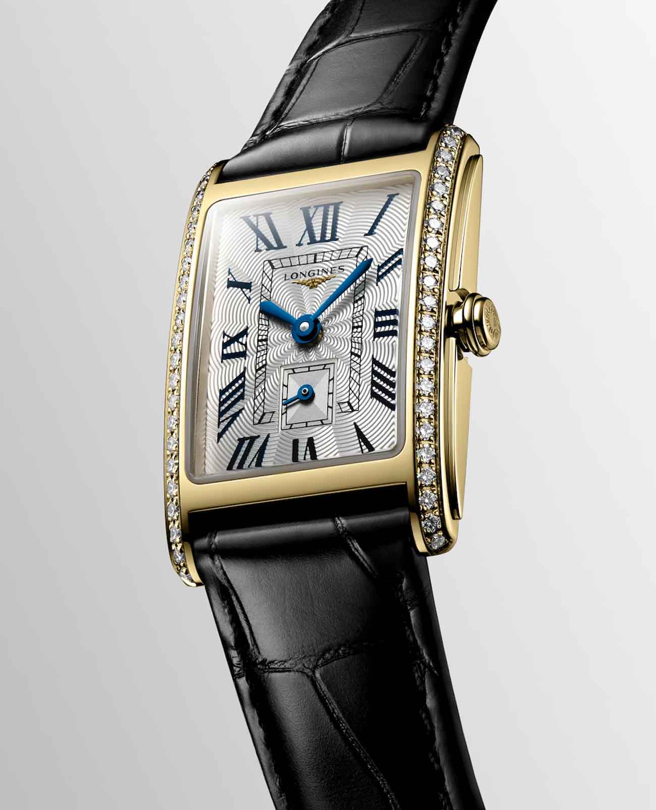 Женские швейцарские часы Longines DolceVita L5.255.7.71.0, кварцевый механизм с высокой точностью. Сапфировое стеклоСапфировое стеклоПрочный и надёжный материал из кристалла сапфира синтетического происхождения, характеризующийся особой твёрдостью и устойчивостью к царапинам и повреждениям. устойчивое к появлению царапин, обладающее высокой прозрачностью. Корпус часов изготовлен из 18-каратного золота18-каратное золотоОбозначение по каратной системе пробирования, оно показывает, сколько драгоценного металла содержится в изделии. 18 карат - в составе 75% чистого золота, соответствует 750 пробе.