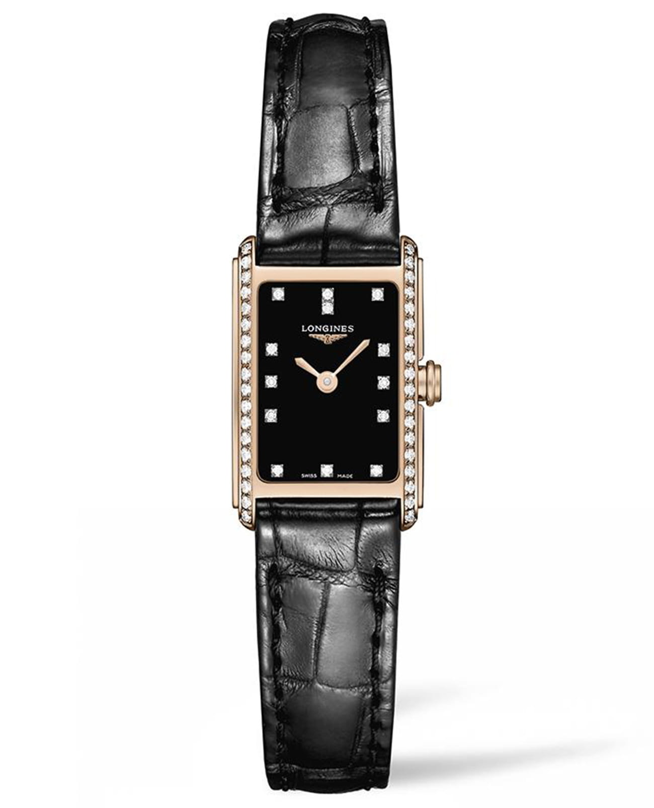 Женские швейцарские часы с бриллиантами Longines DolceVita L5.258.9.57.0, кварцевый механизм с высокой точностью. Сапфировое стекло устойчивое к появлению царапин, обладающее высокой прозрачностью. Класс водозащиты: 30 метров, позволит защитить корпус от случайных брызг или капель дождя. Корпус часов изготовлен из золота, цвета.