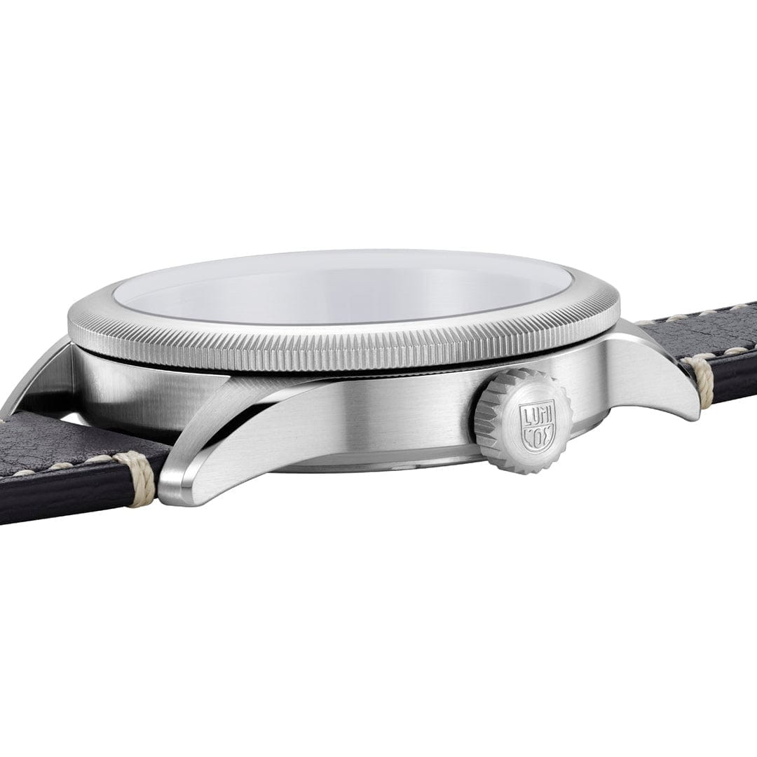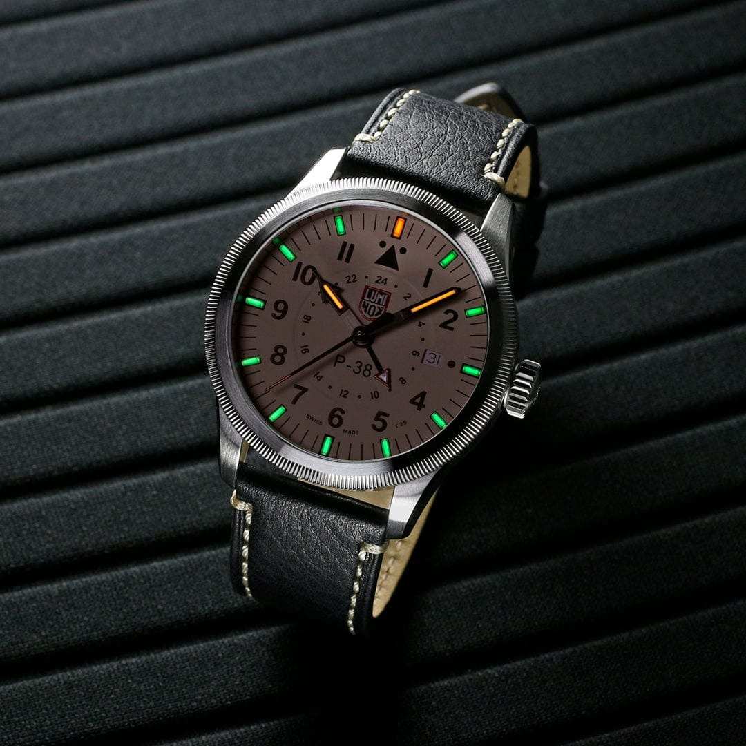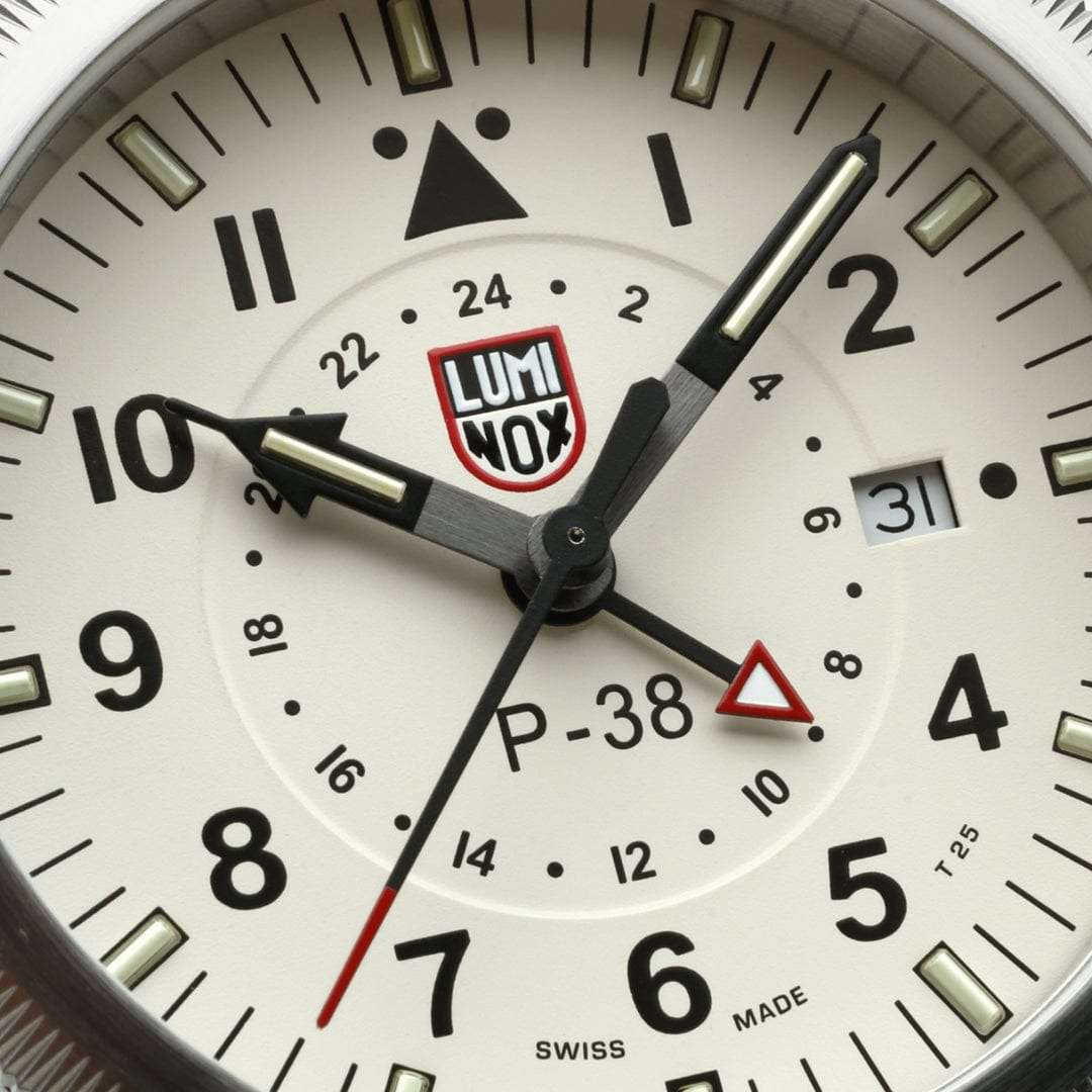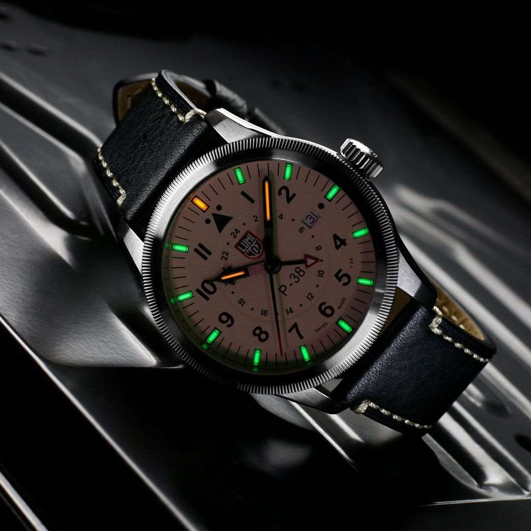 Эти часы Luminox P-38 LIGHTNING XA.9527 представляют собой сочетание классического дизайна и современных технологий. Они оснащены 42-миллиметровым бежевым циферблатом, защищенным сапфировым стекломСапфировое стеклоПрочный и надёжный материал из кристалла сапфира синтетического происхождения, характеризующийся особой твёрдостью и устойчивостью к царапинам и повреждениям. с антибликовым покрытиемАнтибликовое покрытиеСлой оксида металла в 0,13-0,3 микрон, благодаря которому стекло часов не бликует и не отражает свет. Антибликовое покрытие уменьшает отражение света в 10 раз, обеспечивая отличную читаемость показателей циферблата., и стильным черным кожаным ремешком с фирменной классической застежкой застежкой Luminox. Часы обладают функцией GMTGMTОтображение времени второго часового пояса.Такая функция особенно актуальна для путешественников и бизнесменов,которые общаются с людьми из разных стран,теперь вы всегда будете знать,какой час у вашего партнёра или близкого человека., что позволяет отслеживать время в двух часовых поясах одновременно, делая их идеальными спутниками для путешественников по всему миру. Дизайн вдохновлен традиционными навигационными часами B-Uhr 1940-х годов, с характерным треугольником и двумя точками под отметкой 12 часов, что обеспечивает быструю ориентацию и легкость считывания времени. Механизм на базе швейцарского кварца RONDA 515.24H обеспечивает работу часов до 50 месяцев без замены батареи, а постоянное свечение циферблата сохраняется до 25 лет благодаря LLTLLTLLT — это автономный механизм подсветки, основанный на использовании микроскопических газонаполненных элементов. Специальные герметичные капсулы из боросиликатного стекла, интегрированные в циферблат, генерируют свечение без необходимости подключения к внешним источникам энергии. Для их работы не требуется ни дополнительный свет, ни механическое воздействие (например, нажатие кнопки). Свечение возникает благодаря химическому процессу: реакция между тритием, заключенным в капсулах, и люминофорным покрытием создает стабильное автономное освещение. Технология обеспечивает энергетическую независимость и долговечность подсветки.-подсветке. Корпус выполнен из нержавеющей стали 316L и выдерживает погружение на глубину до 100 метров. Завинчивающаяся заводная головка и прозрачная задняя крышка из нержавеющей стали добавляют прочности и эстетической привлекательности.