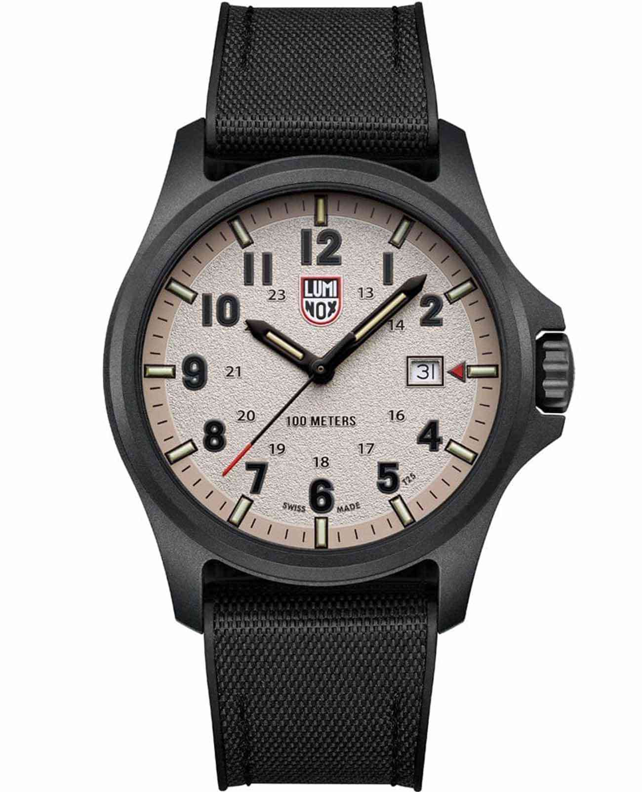 Часы Luminox XL.1971.SET – это воплощение швейцарского качества и надежности, созданные специально для активных мужчин, которые живут в ритме приключений. Эти часы получили свое название в честь пустыни Атакама, самой сухой в мире, что подчеркивает их выносливость и приспособленность к суровым условиям. Модель оснащена кварцевым механизмом с калибром Ronda 515, что обеспечивает высокую точность хода. Корпус выполнен из пластика, усиленного прессованным карбоном CARBONOX, что делает его прочным и легким. Бежевый текстурированный циферблат напоминает о суровом ландшафте пустыни, а метки в виде штрихов и арабских цифр обеспечивают легкость считывания времени. Часы обладают водозащитой 100WR, что позволяет не беспокоиться о них в условиях повышенной влажности. Специальная LLTLLTLLT — это автономный механизм подсветки, основанный на использовании микроскопических газонаполненных элементов. Специальные герметичные капсулы из боросиликатного стекла, интегрированные в циферблат, генерируют свечение без необходимости подключения к внешним источникам энергии. Для их работы не требуется ни дополнительный свет, ни механическое воздействие (например, нажатие кнопки). Свечение возникает благодаря химическому процессу: реакция между тритием, заключенным в капсулах, и люминофорным покрытием создает стабильное автономное освещение. Технология обеспечивает энергетическую независимость и долговечность подсветки.-подсветка гарантирует непревзойденную видимость в темное время суток на протяжении 25 лет. Окошко даты удобно расположено в положении 3 часа, а заводная головка с защитой и дополнительными прокладками обеспечивает надежную герметичность. Стальная задняя крышка крепится на четырех винтах и украшена выгравированным изображением компаса, что добавляет модели уникальности. Часы имеют габариты: диаметр 43 мм, толщина 13 мм, ширина ремешка 23 мм. Ремешок выполнен из каучука с текстильной вставкой и оснащен классической застежкой, что обеспечивает комфортное ношение в течение всего дня. Также у этой модели предусмотрен дополнительный зеленый тканевый ремень NATO. Сапфировое стеклоСапфировое стеклоПрочный и надёжный материал из кристалла сапфира синтетического происхождения, характеризующийся особой твёрдостью и устойчивостью к царапинам и повреждениям. с антибликовым покрытиемАнтибликовое покрытиеСлой оксида металла в 0,13-0,3 микрон, благодаря которому стекло часов не бликует и не отражает свет. Антибликовое покрытие уменьшает отражение света в 10 раз, обеспечивая отличную читаемость показателей циферблата. защищает циферблат от царапин и обеспечивает отличную видимость при любом освещении.