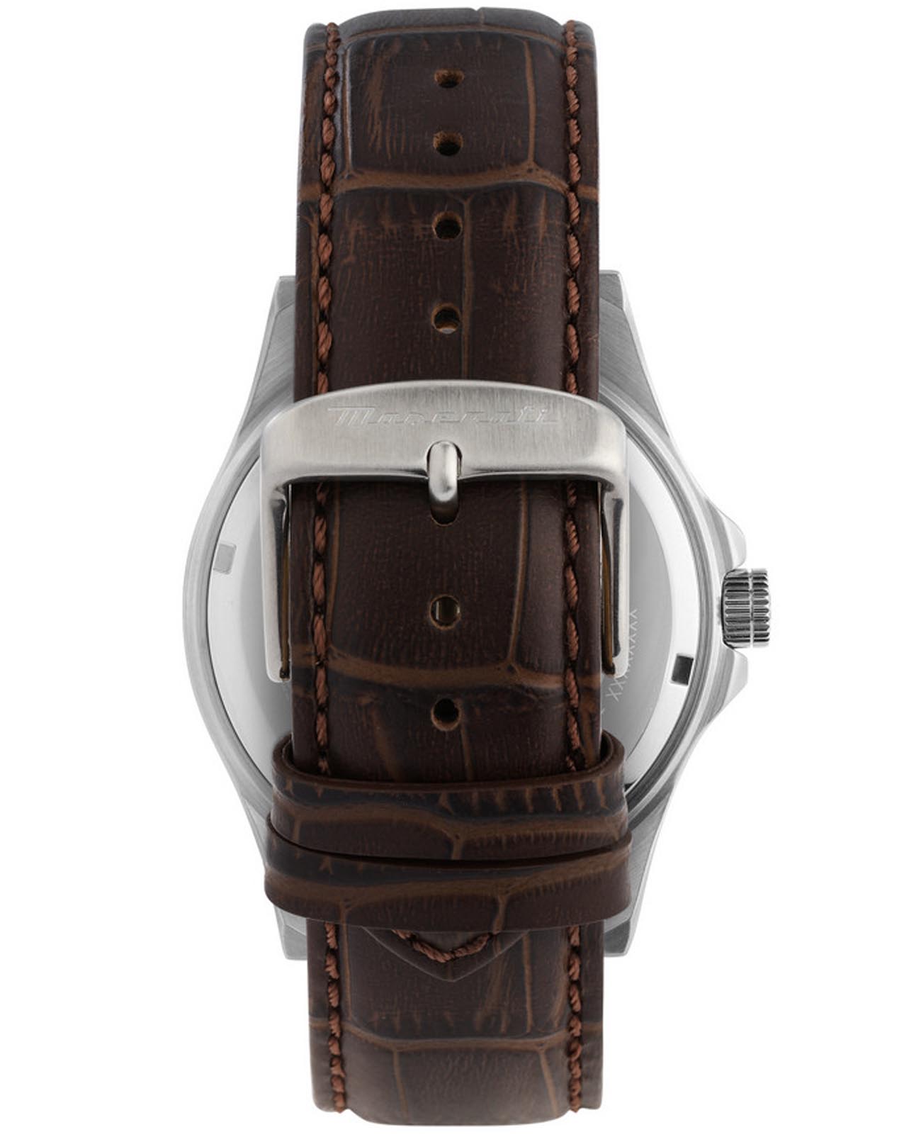 Мужские итальянские часы Maserati Competizione R8851100004, кварцевый механизм с высокой точностью. Корпус часов изготовлен из стали. БезельБезельВнешний ободок, закрепляющий стекло. В спортивных часах так называется поворотное кольцо с делениями на циферблате, выполняет роль таймера – замеряет отрезки времени на шкале. Неподвижный безель – элемент декора. Однонаправленно вращающийся безель на дайверских часах позволяет фиксировать моменты погружения и выныривания на поверхность. из стали с PVD-покрытиемPVDУльтратонкое покрытие наносится в технике вакуумного напыления, сочетает в себе нитрид титана особой прочности со слоем золота или оксида хрома. Несёт в себе декоративную или защитную функцию.. Стрелки с люминесцентным покрытиемЛюминесцентное покрытиеПозволяет считывать показания времени в темноте. Производители наносят на стрелки, часовые индексы, безель или поверхность циферблата светонакопительный состав, дающий холодное свечение.. Окошко даты находится в положении 3 часа. Класс водозащиты: 100 метров, позволит плавать, нырять и заниматься другими водными видами спорта. Кожаный ремешок на стандартной застежке.