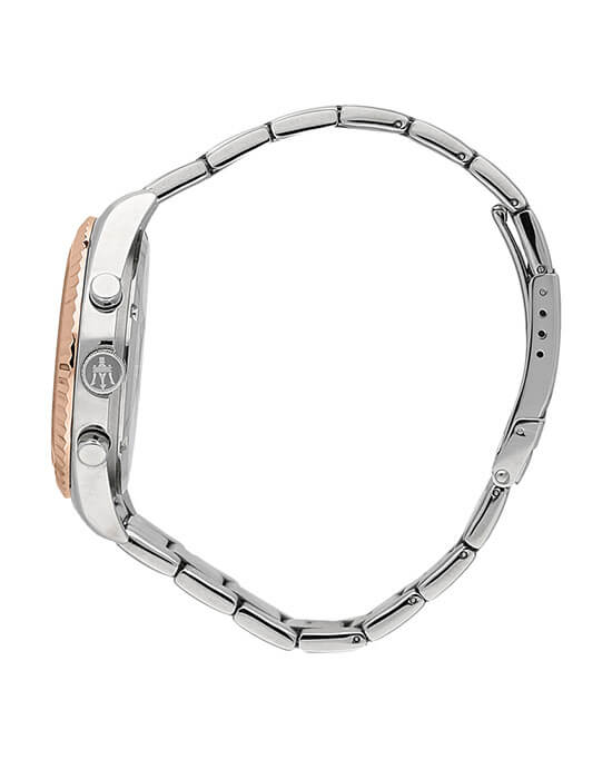 Мужские часы с хронографом Maserati COMPETIZIONE R8853100020, кварцевый механизм с высокой точностью. Класс водозащиты: 100 метров, позволит плавать, нырять и заниматься другими водными видами спорта. Корпус часов изготовлен из стали, разноцветного цвета.