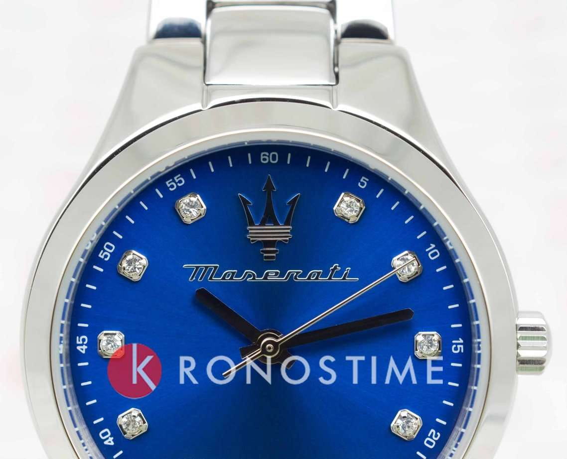 Maserati Attrazione R8853151506 — воплощение стиля и функциональности для современных женщин, ценящих качество и элегантность. Корпус диаметром 30 мм выполнен из нержавеющей стали, обеспечивая прочность и долговечность.Минеральное стеклоМинеральное стеклоМинеральное стекло представляет собой искусственно выращенный минерал кварца. Такое стекло отличается особой устойчивостью к повреждениям и царапинам. Уступает по некоторым качествам сапфировому стеклу. надежно защищает синий циферблат с изящными рисками, придавая часам утонченный вид. Благодаря водостойкости до 50 метров (50 АТМ), эти часы станут вашим надежным спутником в любых условиях, будь то деловая встреча или активный отдых. Завершающий штрих — стальной браслет с раскладной застёжкойРаскладная застёжкаТакой тип застёжки используется только на браслетах из металла. Она никогда не раскрывается полностью, происходит разделение на 2 и более частей. Раскладывающая застёжка снизит вероятность потери часов к минимуму., который подчеркивает общий стиль, обеспечивая комфорт и надежность в носке. Циферблат выполнен по технологии Sunray (солнечные лучи) и украшен фирменным логотипом «Maserati». Метки в виде точек, инкрустированные кристаллами.