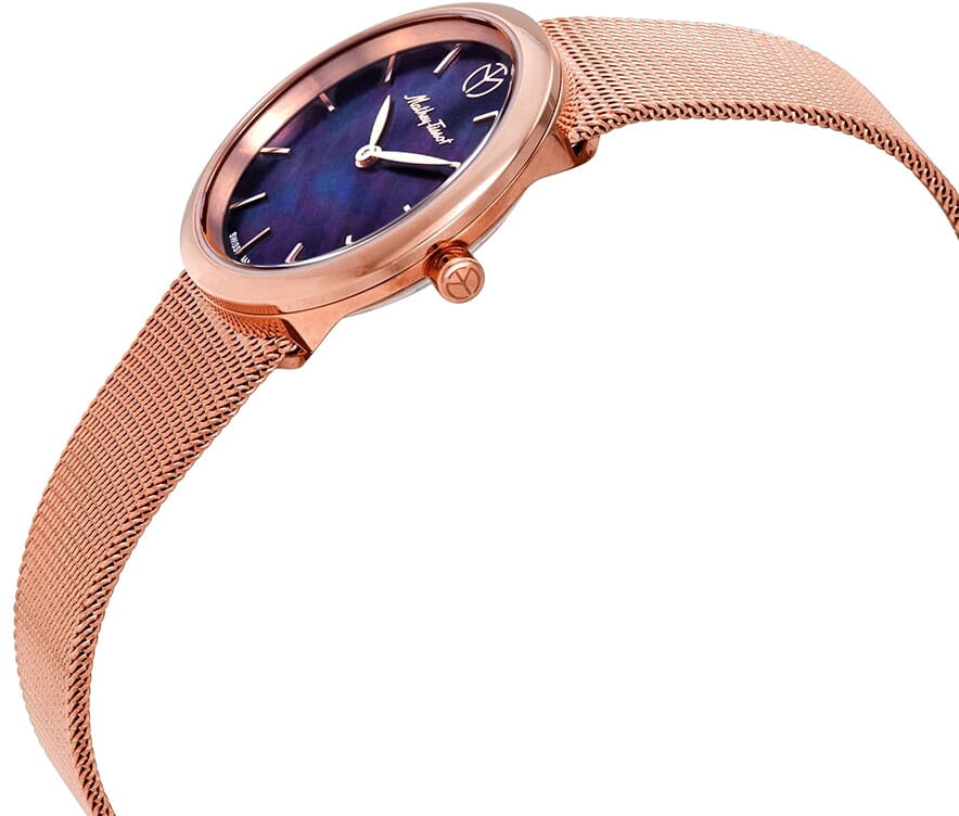 Женские кварцевые часы Mathey-Tissot Milly D403PN — это стильное сочетание элегантности и современного дизайна. Изящный корпус выполнен из нержавеющей стали с PVD-покрытиемPVDУльтратонкое покрытие наносится в технике вакуумного напыления, сочетает в себе нитрид титана особой прочности со слоем золота или оксида хрома. Несёт в себе декоративную или защитную функцию. цвета розового золота, диаметром 30 мм, что придаст образу элегантности и надежности. Изысканный перламутровый циферблат с метками в виде штрихов придает модели особый блеск. Циферблат защищен минеральным стекломМинеральное стеклоМинеральное стекло представляет собой искусственно выращенный минерал кварца. Такое стекло отличается особой устойчивостью к повреждениям и царапинам. Уступает по некоторым качествам сапфировому стеклу. с сапфировым покрытием, обеспечивает устойчивость к царапинам. Часы оснащены надежным кварцевым механизмом. Стальной браслет с PVD-покрытиемPVDУльтратонкое покрытие наносится в технике вакуумного напыления, сочетает в себе нитрид титана особой прочности со слоем золота или оксида хрома. Несёт в себе декоративную или защитную функцию. миланского плетения на раскладном замкеРаскладная застёжкаТакой тип застёжки используется только на браслетах из металла. Она никогда не раскрывается полностью, происходит разделение на 2 и более частей. Раскладывающая застёжка снизит вероятность потери часов к минимуму., гарантирует комфортное и безопасное ношение. Класс водозащиты: 30 метров позволит защитить корпус от случайных брызг или капель дождя. Mathey-Tissot — отличный выбор для тех, кто ценит утонченность и качество.