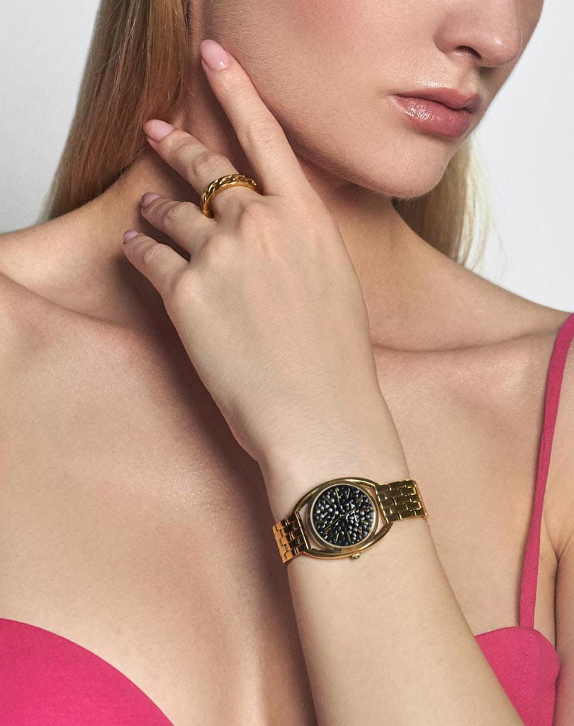 Женские кварцевые часы Mathey-Tissot Saphira D933PYN — это стильное сочетание элегантности и современного дизайна. Изящный корпус выполнен из стали с PVD-покрытиемPVDУльтратонкое покрытие наносится в технике вакуумного напыления, сочетает в себе нитрид титана особой прочности со слоем золота или оксида хрома. Несёт в себе декоративную или защитную функцию. и прекрасно впишется в ваш исключительный стиль. Изысканный циферблат с метками придает модели особый блеск и защищен минеральным стекломМинеральное стеклоМинеральное стекло представляет собой искусственно выращенный минерал кварца. Такое стекло отличается особой устойчивостью к повреждениям и царапинам. Уступает по некоторым качествам сапфировому стеклу., обеспечивающим устойчивость к царапинам. Циферблат украшен декоративным узором. Мечевидные стрелки в стиле Sword с люминесцентным покрытиемЛюминесцентное покрытиеПозволяет считывать показания времени в темноте. Производители наносят на стрелки, часовые индексы, безель или поверхность циферблата светонакопительный состав, дающий холодное свечение., которое светится в темноте после непродолжительной зарядки на свету. Часы оснащены надежным кварцевым механизмом. Стальной браслет с PVD-покрытиемPVDУльтратонкое покрытие наносится в технике вакуумного напыления, сочетает в себе нитрид титана особой прочности со слоем золота или оксида хрома. Несёт в себе декоративную или защитную функцию. на застёжке-бабочке с кнопкамиЗастёжка "бабочка"Такой вид застёжки дополняется предохранителями, помогающими избежать случайного раскрытия браслета. Обладают изящным исполнением. гарантирует комфортное и безопасное ношение. Класс водозащиты: 50 метров позволит защитить корпус от случайных брызг или капель дождя. Mathey-Tissot  — отличный выбор для тех, кто ценит утонченность и качество.