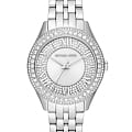 Женские американские часы с минеральным стекломМинеральное стеклоМинеральное стекло представляет собой искусственно выращенный минерал кварца. Такое стекло отличается особой устойчивостью к повреждениям и царапинам. Уступает по некоторым качествам сапфировому стеклу. Michael Kors Harlowe MK4708, кварцевый механизм с высокой точностью. Корпус часов изготовлен из нержавеющей стали. Циферблат и безельБезельВнешний ободок, закрепляющий стекло. В спортивных часах так называется поворотное кольцо с делениями на циферблате, выполняет роль таймера – замеряет отрезки времени на шкале. Неподвижный безель – элемент декора. Однонаправленно вращающийся безель на дайверских часах позволяет фиксировать моменты погружения и выныривания на поверхность. украшены кристаллами. Метки в виде штрихов и римских цифр. Заводная головка с защитой. Класс водозащиты: 50 метров, позволит защитить корпус от случайных брызг или капель дождя. Стальной браслет на раскладной застёжкеРаскладная застёжкаТакой тип застёжки используется только на браслетах из металла. Она никогда не раскрывается полностью, происходит разделение на 2 и более частей. Раскладывающая застёжка снизит вероятность потери часов к минимуму..