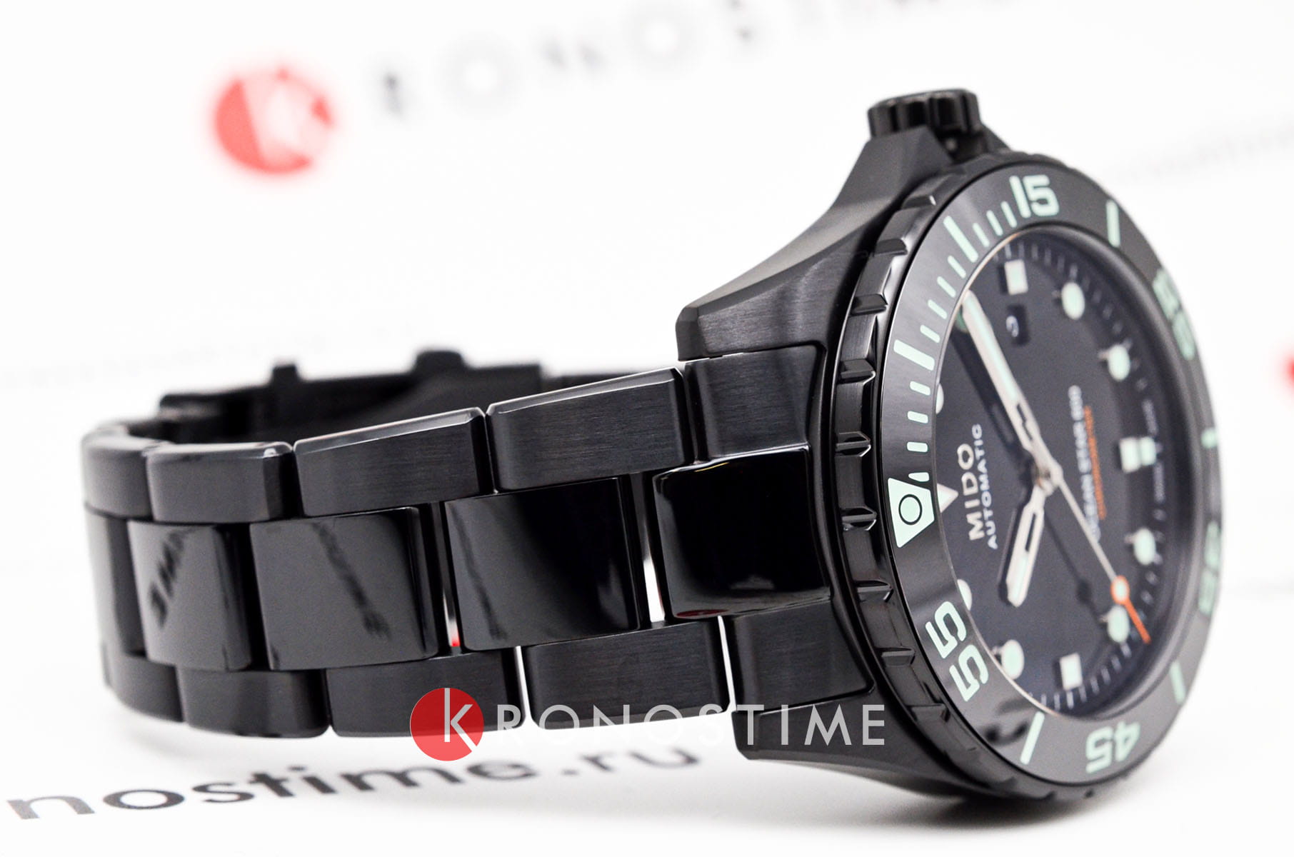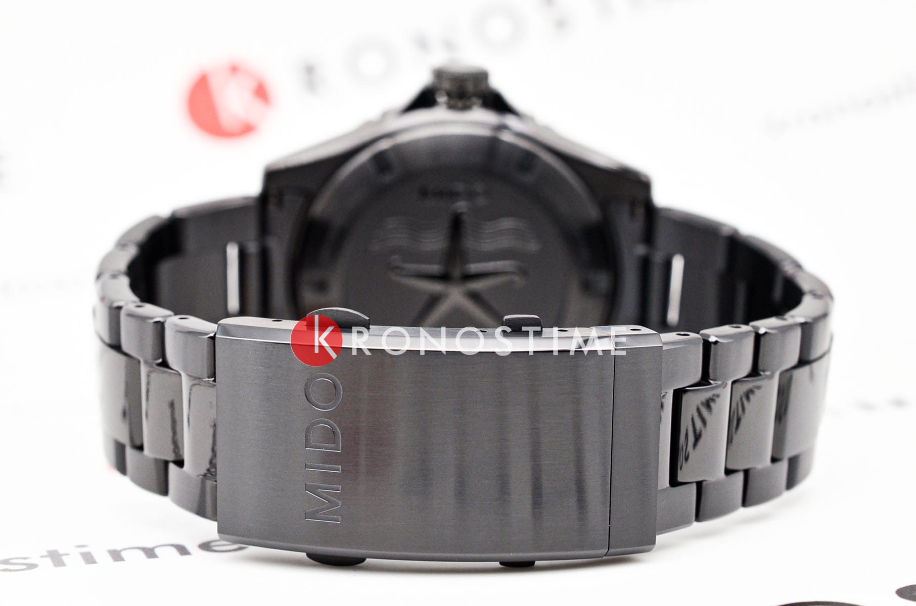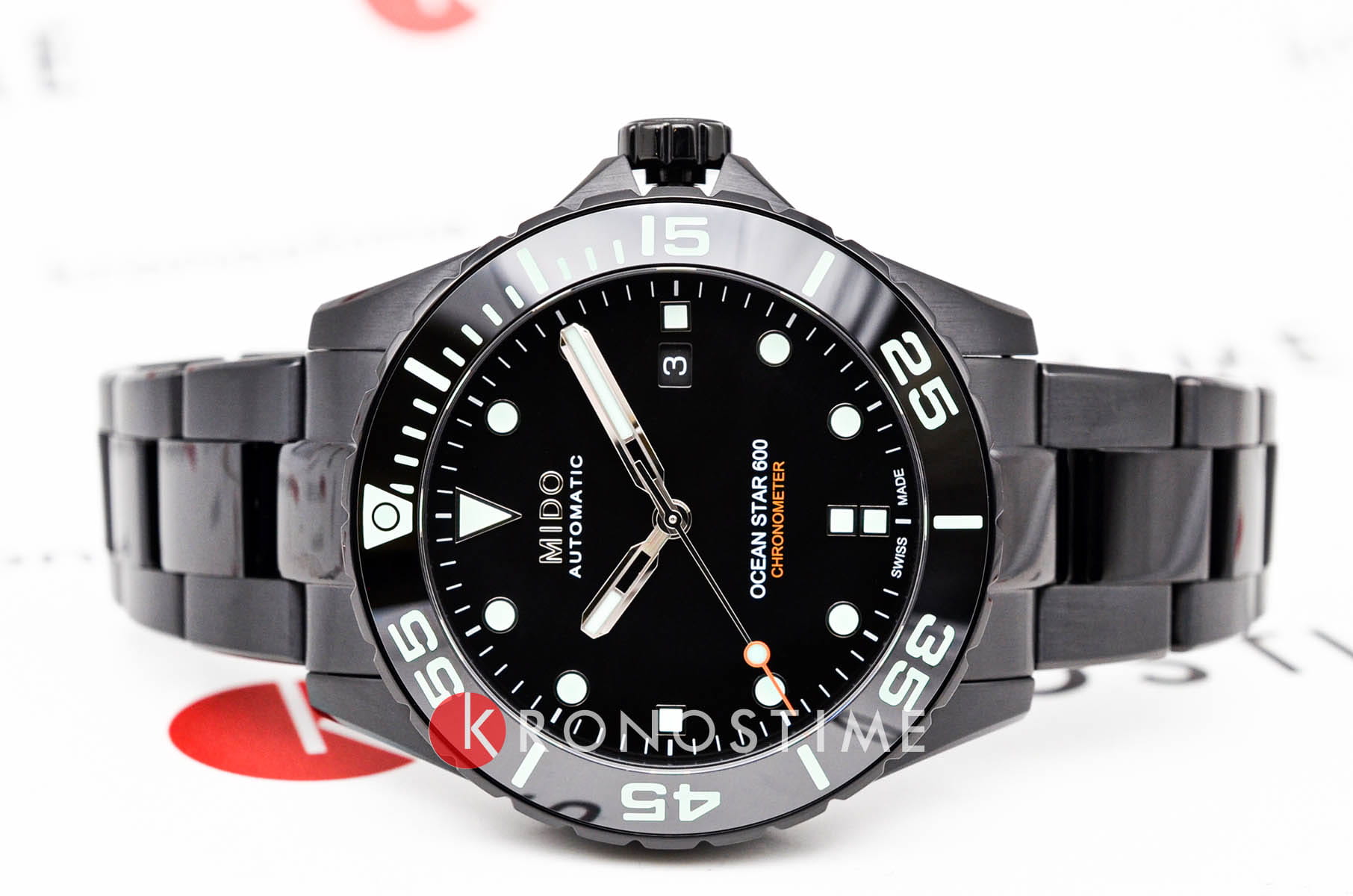 Часы MIDO Ocean Star 600 Chronometer (артикул M026.608.33.051.00) — это высокотехнологичная модель, созданная для исследования океанских глубин. Корпус диаметром 43,5 мм выполнен из нержавеющей стали с чёрным DLC-покрытиемDLC-покрытиеDiamond like carbon - одно из лучших видов покрытия, представляющее собой углерод с алмазными свойствами. На поверхность материала наносятся распавшиеся молекулы углерода, превращающиеся в плёнку из алмазоподобных связей, которая перенимает твёрдость алмаза. и керамическим безелем, заполненным люминесцентным составом Super-LumiNova® Grade XЛюминесцентное покрытиеПозволяет считывать показания времени в темноте. Производители наносят на стрелки, часовые индексы, безель или поверхность циферблата светонакопительный состав, дающий холодное свечение.. Водозащита до 60 бар (600 метров), гелиевый клапан обеспечивают функциональность для глубоководных погружений. Чёрный циферблат с накладными часовыми метками, покрытыми Super-LumiNova®Люминесцентное покрытиеПозволяет считывать показания времени в темноте. Производители наносят на стрелки, часовые индексы, безель или поверхность циферблата светонакопительный состав, дающий холодное свечение., защищён сапфировым стекломСапфировое стеклоПрочный и надёжный материал из кристалла сапфира синтетического происхождения, характеризующийся особой твёрдостью и устойчивостью к царапинам и повреждениям. с двусторонним антибликовым покрытием.