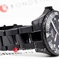 Браслет из нержавеющей стали с чёрным DLC-покрытиемDLC-покрытиеDiamond like carbon - одно из лучших видов покрытия, представляющее собой углерод с алмазными свойствами. На поверхность материала наносятся распавшиеся молекулы углерода, превращающиеся в плёнку из алмазоподобных связей, которая перенимает твёрдость алмаза. и раскладывающейся застёжкойРаскладная застёжкаТакой тип застёжки используется только на браслетах из металла. Она никогда не раскрывается полностью, происходит разделение на 2 и более частей. Раскладывающая застёжка снизит вероятность потери часов к минимуму. с удлинителем для дайвинга обеспечивает комфортное ношение и надёжную фиксацию.