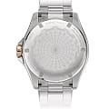 Браслет из нержавеющей стали с PVD-покрытиемPVDУльтратонкое покрытие наносится в технике вакуумного напыления, сочетает в себе нитрид титана особой прочности со слоем золота или оксида хрома. Несёт в себе декоративную или защитную функцию. розового золота и раскладывающейся застёжкойРаскладная застёжкаТакой тип застёжки используется только на браслетах из металла. Она никогда не раскрывается полностью, происходит разделение на 2 и более частей. Раскладывающая застёжка снизит вероятность потери часов к минимуму. с удлинителем для дайвинга обеспечивает комфортное ношение.
