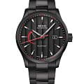 Браслет из нержавеющей стали с чёрным PVD-покрытиемPVDУльтратонкое покрытие наносится в технике вакуумного напыления, сочетает в себе нитрид титана особой прочности со слоем золота или оксида хрома. Несёт в себе декоративную или защитную функцию. и раскладывающейся застёжкойРаскладная застёжкаТакой тип застёжки используется только на браслетах из металла. Она никогда не раскрывается полностью, происходит разделение на 2 и более частей. Раскладывающая застёжка снизит вероятность потери часов к минимуму. обеспечивает комфортное ношение.