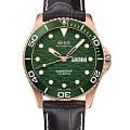 Часы Mido Ocean Star 200c M042.430.36.091.00 сочетают элегантный дизайн и высокую функциональность, подходя как для повседневного ношения, так и для водных приключений. В механизм внедрена пружина баланса Nivachron™Nivachron™Специально разработанный инновационный сплав Nivachron™ повышает устойчивость часов к воздействию магнитных полей.. Корпус диаметром 42,5 мм выполнен из нержавеющей стали с водозащитой до 20 бар (200 метров). Однонаправленная вращающийся безель из стали и керамики. Зелёный циферблат с волнообразным узором оснащён накладными часовыми метками и стрелками с покрытием Super-LumiNova®Люминесцентное покрытиеПозволяет считывать показания времени в темноте. Производители наносят на стрелки, часовые индексы, безель или поверхность циферблата светонакопительный состав, дающий холодное свечение.. Окошки даты и дня недели расположены в положении «3 часа». Циферблат защищён сапфировым стекломСапфировое стеклоПрочный и надёжный материал из кристалла сапфира синтетического происхождения, характеризующийся особой твёрдостью и устойчивостью к царапинам и повреждениям. с двусторонним антибликовым покрытиемАнтибликовое покрытиеСлой оксида металла в 0,13-0,3 микрон, благодаря которому стекло часов не бликует и не отражает свет. Антибликовое покрытие уменьшает отражение света в 10 раз, обеспечивая отличную читаемость показателей циферблата.. Модель оснащена автоматическим механизмом MIDO Caliber 80 (на базе ETA C07.621), обеспечивающим запас хода до 80 часов. Браслет из кожи со стандартной застежкой.