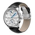 Мужские механические часы с ручным подзаводом — это аксессуар от легендарного бренда «МОЛНИЯ», созданный на Челябинском часовом заводе. Корпус диаметром 42 мм выполнен из нержавеющей стали. Циферблат оформлен индексами и стрелками. Малая секундная стрелка вынесена на отдельный субциферблат. Циферблат защищён сапфировым стекломСапфировое стеклоПрочный и надёжный материал из кристалла сапфира синтетического происхождения, характеризующийся особой твёрдостью и устойчивостью к царапинам и повреждениям.. Механизм — мануфактурный калибр 3603RS, полностью собранный вручную, с декорированными деталями, которые видны через прозрачную заднюю крышку. Часы оснащены кожаным ремешком чёрного цвета с раскладной застёжкойРаскладная застёжкаТакой тип застёжки используется только на браслетах из металла. Она никогда не раскрывается полностью, происходит разделение на 2 и более частей. Раскладывающая застёжка снизит вероятность потери часов к минимуму.. Водонепроницаемость 100 м позволяет использовать часы для плавания и повседневного ношения. Идеальный выбор для тех, кто ценит российское качество и традиции.
