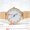Женские датские кварцевые часы Obaku Mesh V248LXVIMV, кварцевый механизм с высокой точностью. Класс водозащиты: 30 метров, позволит защитить корпус от случайных брызг или капель дождя. Корпус часов изготовлен из стали, золотистого цвета.