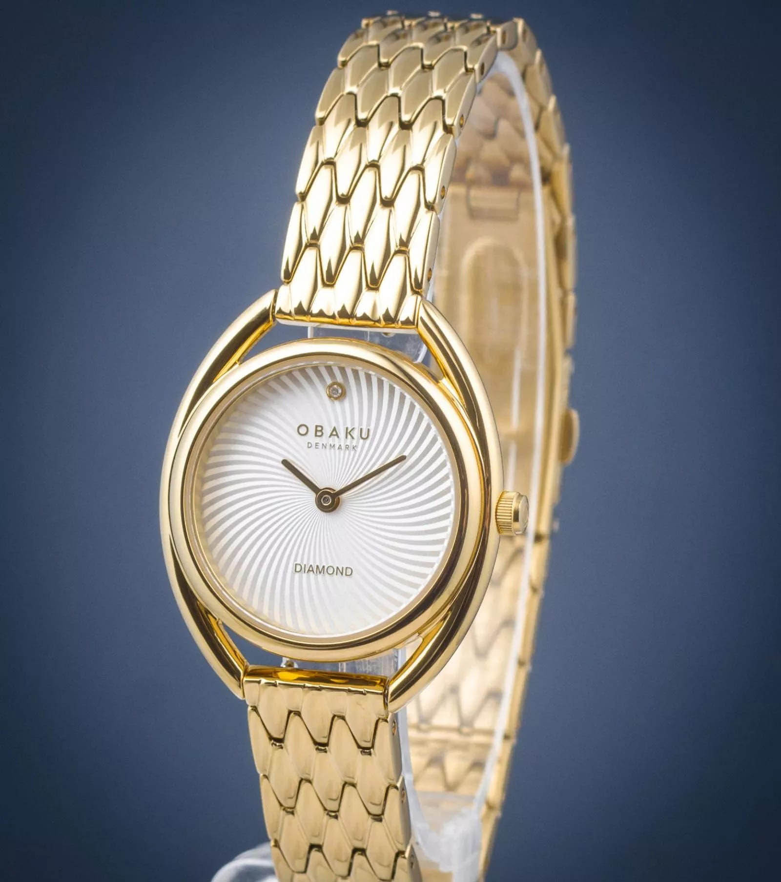 Женские наручные кварцевые часы с минеральным стекломМинеральное стеклоМинеральное стекло представляет собой искусственно выращенный минерал кварца. Такое стекло отличается особой устойчивостью к повреждениям и царапинам. Уступает по некоторым качествам сапфировому стеклу. Obaku Diamond V286LXGISG, кварцевый механизм с высокой точностью. Класс водозащиты: 30 метров, позволит защитить корпус от случайных брызг или капель дождя. Корпус часов изготовлен из стали с IP-покрытиемIP-покрытиеМетод ионного напыления. Демонстрирует повышенную устойчивость к истиранию, окислению и химическим веществам. Под воздействием высокого давления и температуры около 1500°C молекулы металла надёжно соединяются с частицами корпуса часов.. Стальной браслет на раскладной застёжкеРаскладная застёжкаТакой тип застёжки используется только на браслетах из металла. Она никогда не раскрывается полностью, происходит разделение на 2 и более частей. Раскладывающая застёжка снизит вероятность потери часов к минимуму. с IP-покрытиемIP-покрытиеМетод ионного напыления. Демонстрирует повышенную устойчивость к истиранию, окислению и химическим веществам. Под воздействием высокого давления и температуры около 1500°C молекулы металла надёжно соединяются с частицами корпуса часов.. Белый циферблат декорирован бриллиантом.