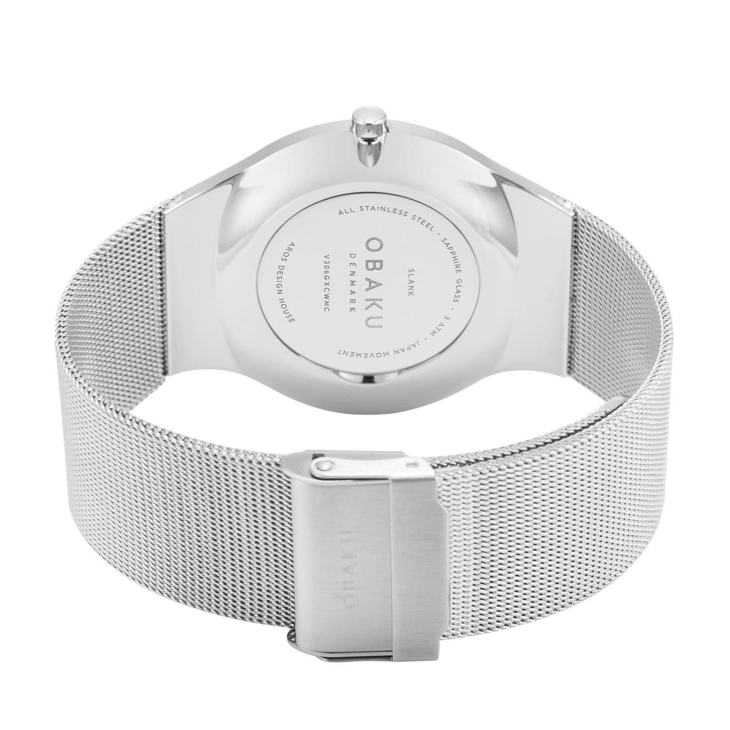 Obaku Slank V306GXCWMC – элегантные мужские часы, сочетающие современный дизайн и высокое качество исполнения. Корпус диаметром 40 мм выполнен из нержавеющей стали, придающим модели стильный и современный вид. Белый циферблат защищён сапфировым стекломСапфировое стеклоПрочный и надёжный материал из кристалла сапфира синтетического происхождения, характеризующийся особой твёрдостью и устойчивостью к царапинам и повреждениям., устойчивым к царапинам, обеспечивая долговечность и сохранение внешнего вида. Часы оснащены точным кварцевым механизмом, обеспечивающим надёжность и точность хода. Минималистичный дизайн циферблата подчёркивает скандинавскую эстетику и утончённость. Браслет из нержавеющей стали с сетчатым плетением оснащён раскладным замкомРаскладной замокДанный вариант застежки используется только на часах с металлическим браслетом. Отличительная особенность такого крепления в том, что длина браслета становится универсальной и вы можете самостоятельно отрегулировать нужный вам размер – застежка просто двигается по браслету часов., обеспечивающей комфортное ношение и надёжную фиксацию на запястье. Водонепроницаемость до 30 метров (3 ATM) защищает модель от случайных брызг и дождя, делая её идеальным выбором для повседневного использования.