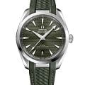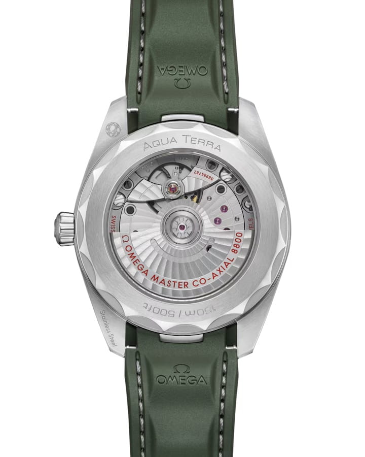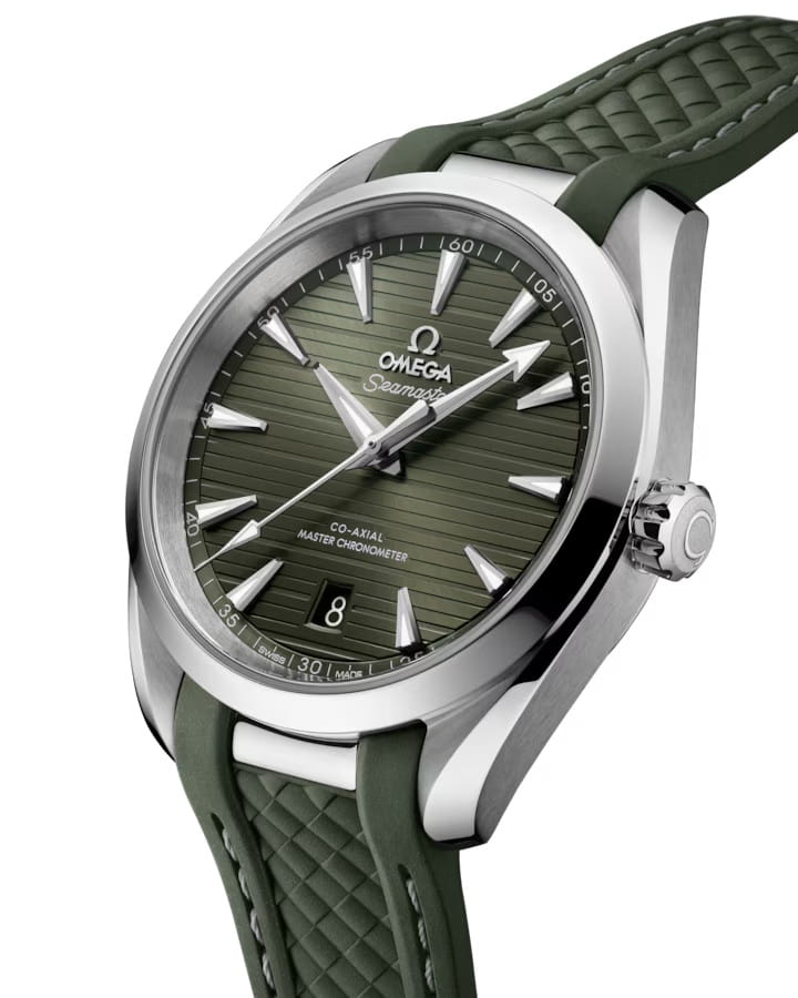 Omega Seamaster Aqua Terra выполнены в симметричном корпусе из нержавеющей стали с завинчивающейся задней крышкой, украшенной волновым узором. Циферблат дополнен окошком даты на 6 часах и оформлен горизонтальным рисунком, вдохновлённым текстурой тикового дерева палуб яхт. Стрелки и метки оснащены люминесцентным покрытиемЛюминесцентное покрытиеПозволяет считывать показания времени в темноте. Производители наносят на стрелки, часовые индексы, безель или поверхность циферблата светонакопительный состав, дающий холодное свечение. Super-LumiNova для лучшей читаемости в темноте. Калибр Omega 8800 сертифицирован как Master Chronometer — гарантия высочайшей точности и устойчивости к магнитным полям. Запас хода составляет 55 часов. Защиту циферблата обеспечивает сапфировое стеклоСапфировое стеклоПрочный и надёжный материал из кристалла сапфира синтетического происхождения, характеризующийся особой твёрдостью и устойчивостью к царапинам и повреждениям. с антибликовым покрытиемАнтибликовое покрытиеСлой оксида металла в 0,13-0,3 микрон, благодаря которому стекло часов не бликует и не отражает свет. Антибликовое покрытие уменьшает отражение света в 10 раз, обеспечивая отличную читаемость показателей циферблата.. Водозащита позволяет использовать часы в воде без риска повреждения. Часы установлены на каучуковый ремешок с вставкой и дополнительным стальным звеном. Это сочетание премиального качества, технологичности и классического дизайна.