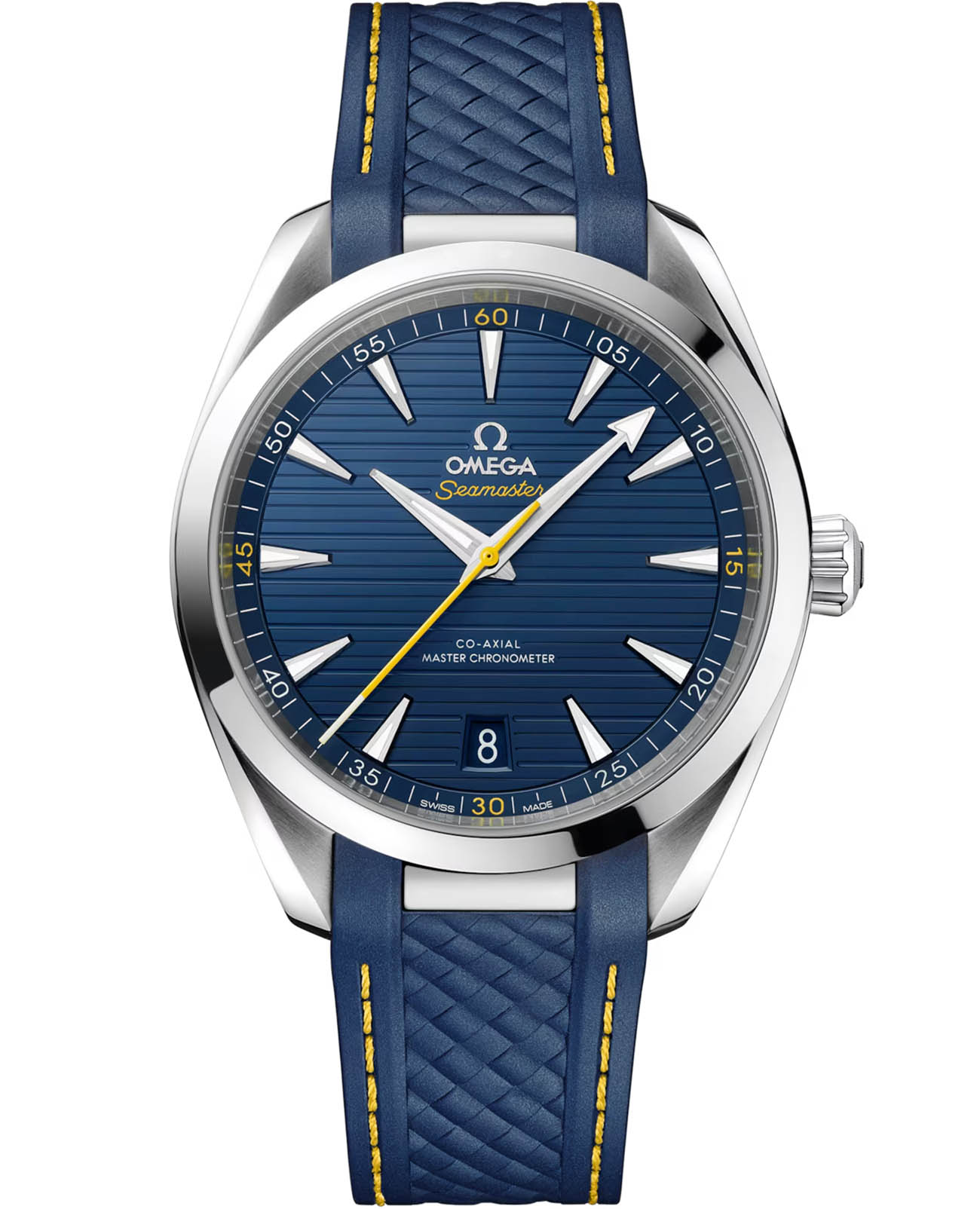 Omega Seamaster Aqua Terra выполнены в симметричном корпусе из нержавеющей стали с завинчивающейся задней крышкой, украшенной волновым узором. Циферблат дополнен окошком даты на 6 часах и оформлен в виде горизонтального рисунка, вдохновлённого текстурой тикового дерева палуб яхт. Стрелки и метки оснащены люминесцентным покрытиемЛюминесцентное покрытиеПозволяет считывать показания времени в темноте. Производители наносят на стрелки, часовые индексы, безель или поверхность циферблата светонакопительный состав, дающий холодное свечение. Super-LumiNova для лучшей читаемости в темноте. Калибр Omega 8900 сертифицирован как Master Chronometer — гарантия высочайшей точности и устойчивости к магнитным полям. Запас хода составляет 60 часов. Защиту циферблата обеспечивает сапфировое стеклоСапфировое стеклоПрочный и надёжный материал из кристалла сапфира синтетического происхождения, характеризующийся особой твёрдостью и устойчивостью к царапинам и повреждениям. с антибликовым покрытиемАнтибликовое покрытиеСлой оксида металла в 0,13-0,3 микрон, благодаря которому стекло часов не бликует и не отражает свет. Антибликовое покрытие уменьшает отражение света в 10 раз, обеспечивая отличную читаемость показателей циферблата.. Водозащита позволяет использовать часы в воде без риска повреждения. Часы установлены на структурированный резиновый ремешок с дополнительным стальным звеном для интеграции с корпусом. Это сочетание премиального качества, технологичности и классического дизайна.