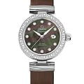 Ladymatic – воплощение вечной элегантности, где каждая деталь пропитана изысканностью. Корпус из нержавеющей стали с волнистыми звеньями сочетается с серым кожаным ремешком, создавая гармонию металла и кожи. Стрелки из белого золота18-каратное золотоОбозначение по каратной системе пробирования, оно показывает, сколько драгоценного металла содержится в изделии. 18 карат - в составе 75% чистого золота, соответствует 750 пробе.