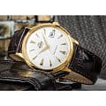 Мужские механические часы с автоподзаводом Orient Automatic FAC00003W (FAC00003W0). Минеральное стеклоМинеральное стеклоМинеральное стекло представляет собой искусственно выращенный минерал кварца. Такое стекло отличается особой устойчивостью к повреждениям и царапинам. Уступает по некоторым качествам сапфировому стеклу. устойчивое к появлению царапин, обладающее высокой прозрачностью. Корпус из нержавеющей стали с PVDPVDУльтратонкое покрытие наносится в технике вакуумного напыления, сочетает в себе нитрид титана особой прочности со слоем золота или оксида хрома. Несёт в себе декоративную или защитную функцию. покрытием. Окошко даты в положении 3 часов. Класс водозащиты: 30 метров, позволит защитить корпус от случайных брызг или капель дождя. Кожаный ремешок на стандартной застежке.