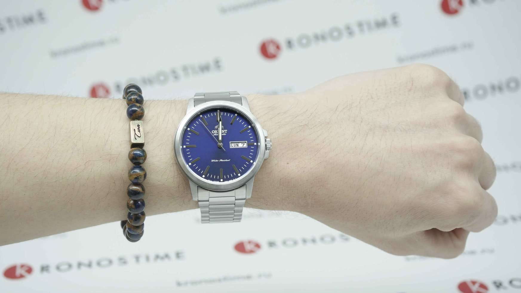 Orient RA-AA0C02L – элегантные мужские часы, сочетающие современный дизайн и высокую функциональность. Корпус диаметром 41,9 мм выполнен из нержавеющей стали, обеспечивающей прочность и долговечность. Синий циферблат с метками и стрелками, покрытыми люминесцентным покрытиемЛюминесцентное покрытиеПозволяет считывать показания времени в темноте. Производители наносят на стрелки, часовые индексы, безель или поверхность циферблата светонакопительный состав, дающий холодное свечение., обеспечивает отличную читаемость в любых условиях, а его поверхность защищена минеральным стекломМинеральное стеклоМинеральное стекло представляет собой искусственно выращенный минерал кварца. Такое стекло отличается особой устойчивостью к повреждениям и царапинам. Уступает по некоторым качествам сапфировому стеклу., устойчивым к царапинам. Часы оснащены японским автоматическим механизмом Orient калибра F6922 с 22 камнями, обеспечивающим точный ход. Функция стоп-секунды позволяет точно устанавливать время, а запас хода составляет около 40 часов. Браслет из нержавеющей стали оснащён раскладной застёжкойРаскладная застёжкаТакой тип застёжки используется только на браслетах из металла. Она никогда не раскрывается полностью, происходит разделение на 2 и более частей. Раскладывающая застёжка снизит вероятность потери часов к минимуму., обеспечивающей надёжную фиксацию на запястье. Водонепроницаемость 50 метров (5 бар) делает модель идеальным выбором для повседневного использования и защиты от случайных брызг.