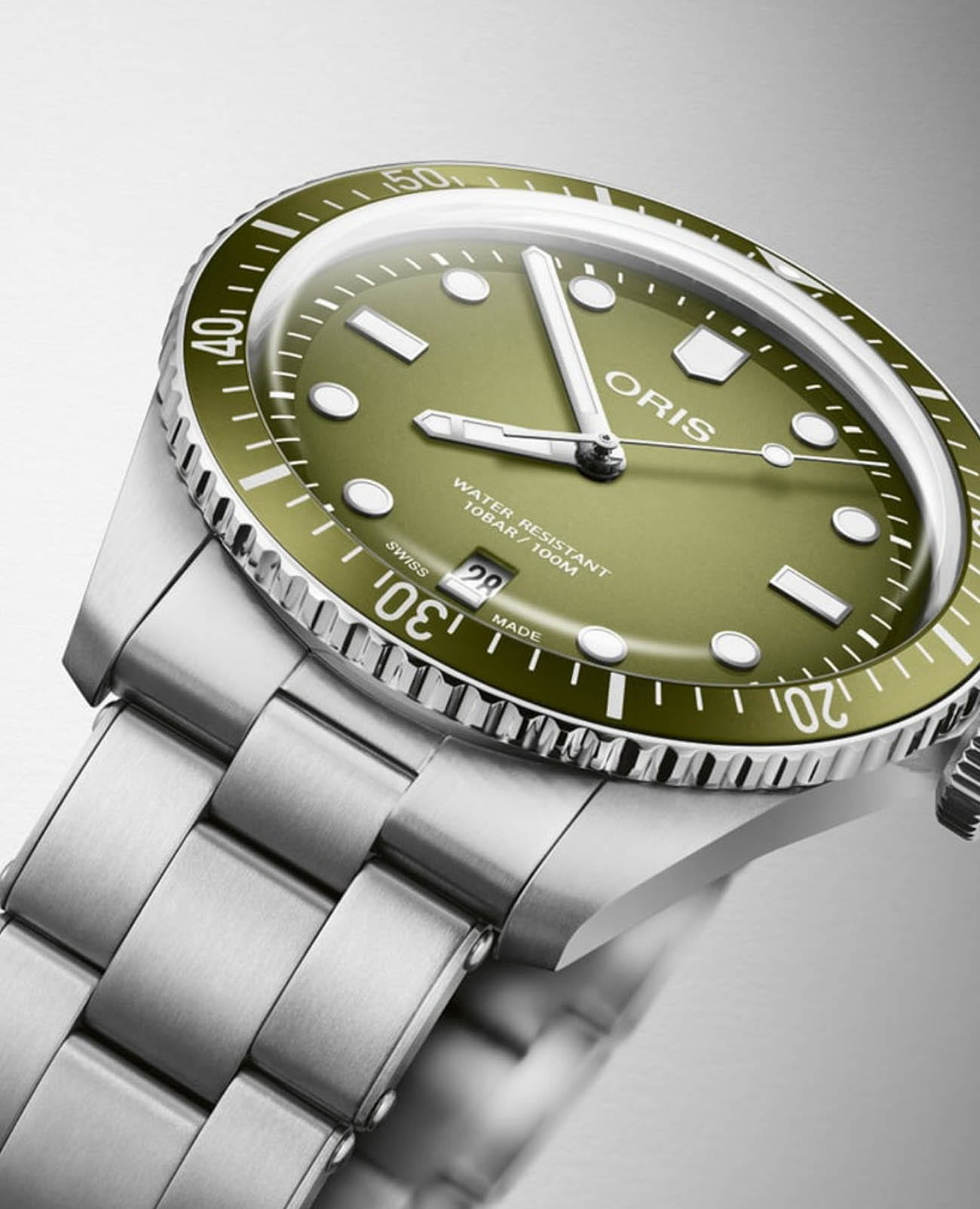 Швейцарские мужские часы ORIS Divers Sixty-Five — это современная интерпретация легендарной модели 1960-х годов, которая сочетает в себе классический дизайн ретро-дайверских часов и передовые технологии. Корпус диаметром 40 мм выполнен из высококачественной нержавеющей стали, что обеспечивает прочность и долговечность. Циферблат с традиционными стрелками и метками в виде штрихов защищен устойчивым к царапинам сапфировым стеклом с антибликовым покрытиемСапфировое стеклоПрочный и надёжный материал из кристалла сапфира синтетического происхождения, характеризующийся особой твёрдостью и устойчивостью к царапинам и повреждениям., обеспечивающим отличную читаемость показаний в любых условиях. Механизм Oris 733 — это автоматический механизм с автоподзаводом, который гарантирует точность хода и надежность работы. Функционал включает центральные часовые, минутные и секундные стрелки, окошко даты с быстрым переводом, а также функцию stop-second для точной настройки времени. Запас хода механизма составляет 41 час. Стрелки и метки имеют люминесцентное покрытиеЛюминесцентное покрытиеПозволяет считывать показания времени в темноте. Производители наносят на стрелки, часовые индексы, безель или поверхность циферблата светонакопительный состав, дающий холодное свечение., которое позволяет легко определять время даже в темноте. Поворотный безель из нержавеющей стали с PVD-покрытиемPVDУльтратонкое покрытие наносится в технике вакуумного напыления, сочетает в себе нитрид титана особой прочности со слоем золота или оксида хрома. Несёт в себе декоративную или защитную функцию. помогает точно отслеживать промежутки времени. Водозащита до 100 метров (WR100) делает эти часы идеальными для плавания и других водных видов спорта. Браслет из нержавеющей стали оснащен надежной раскладывающейся застежкойРаскладная застёжкаТакой тип застёжки используется только на браслетах из металла. Она никогда не раскрывается полностью, происходит разделение на 2 и более частей. Раскладывающая застёжка снизит вероятность потери часов к минимуму., обеспечивающей комфортную фиксацию на запястье.