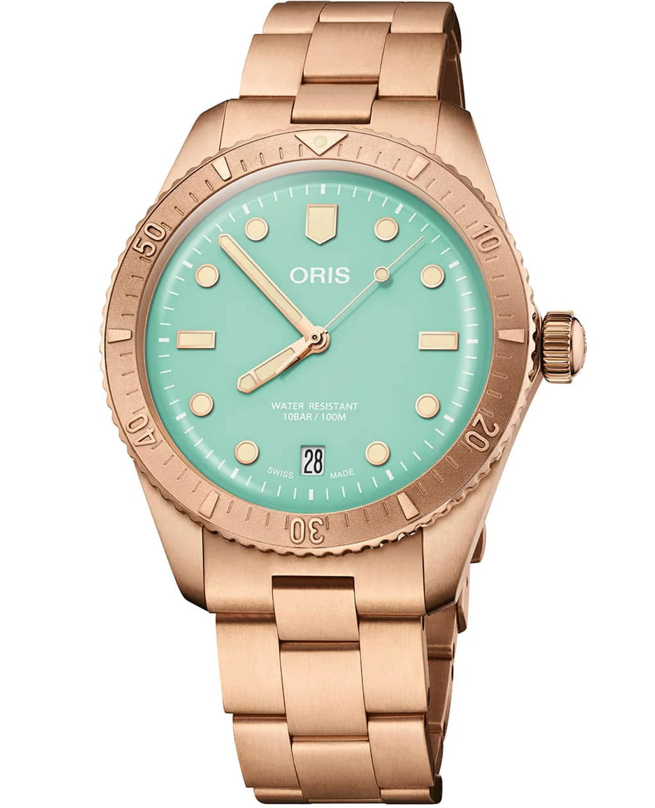 Часы Divers Sixty-Five "Cotton Candy" - это маяк радости. Корпус, безель, заводная головка и браслет полностью выполнены из бронзы, а циферблат окрашен в яркие цвета. Часы в 38-миллиметровом корпусе унисекс оснащены механизмом Swiss Made. Эти часы символизируют оптимизм и лучшие времена.