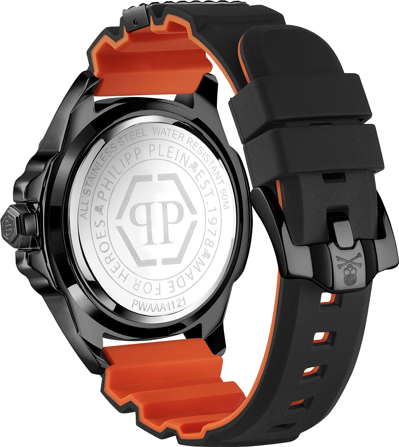 Яркие мужские часы Philipp Plein The Skull PWAAA1121, кварцевый механизм с высокой точностью. Класс водозащиты: 50 метров, позволит защитить корпус от случайных брызг или капель дождя. Корпус часов изготовлен из стали, цвета.