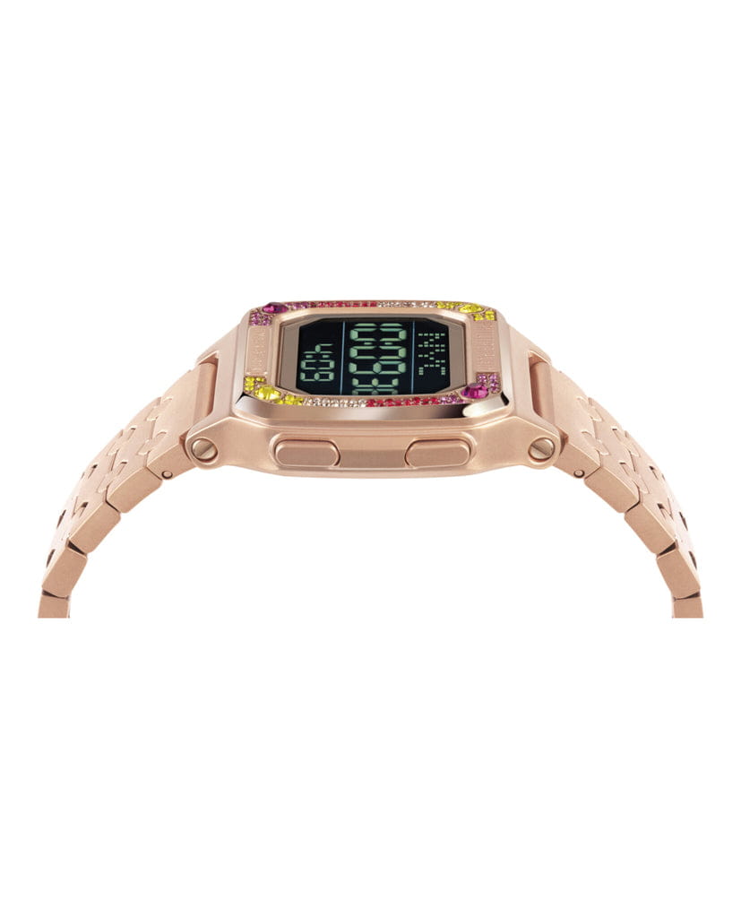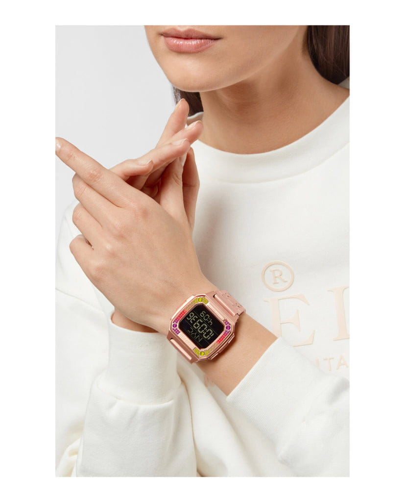 Электронные унисекс часы ХронографХронографФункция позволяет измерять отрезки времени с особой точностью: часы, минуты, секунды. Верным признаком хронографа является наличие на циферблате 3 дополнительных окошек-счётчиков. Philipp Plein Hyper Shock PWHAA0821, электронный механизм с высокой точностью. Класс водозащиты: 50 метров, позволит защитить корпус от случайных брызг или капель дождя. Прямоугольный корпус выполнен из нержавеющей стали с IP-покрытиемIP-покрытиеМетод ионного напыления. Демонстрирует повышенную устойчивость к истиранию, окислению и химическим веществам. Под воздействием высокого давления и температуры около 1500°C молекулы металла надёжно соединяются с частицами корпуса часов. цвета розового золота. Браслет из нержавеющей стали шириной 22 мм, застёжка «бабочка» с кнопкамиЗастёжка "бабочка"Такой вид застёжки дополняется предохранителями, помогающими избежать случайного раскрытия браслета. Обладают изящным исполнением. .