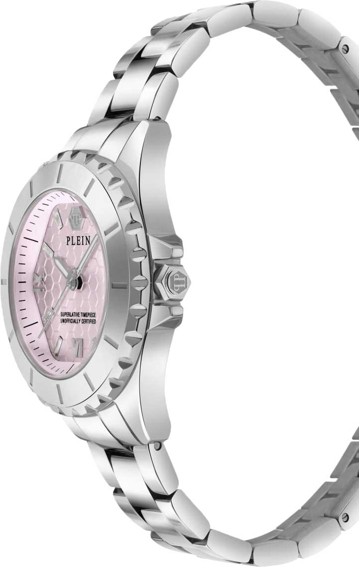 Женские часы Philipp Plein PWPOA0324 с надежным кварцевым механизмом. Корпус часов изготовлен из нержавеющей стали. Минеральное стеклоМинеральное стеклоМинеральное стекло представляет собой искусственно выращенный минерал кварца. Такое стекло отличается особой устойчивостью к повреждениям и царапинам. Уступает по некоторым качествам сапфировому стеклу. устойчивое к мелким механическим повреждениям. Влагозащита: 50 метров, позволит плавать, нырять и заниматься другими водными видами спорта. Стрелки и метки с люминесцентным покрытиемЛюминесцентное покрытиеПозволяет считывать показания времени в темноте. Производители наносят на стрелки, часовые индексы, безель или поверхность циферблата светонакопительный состав, дающий холодное свечение..