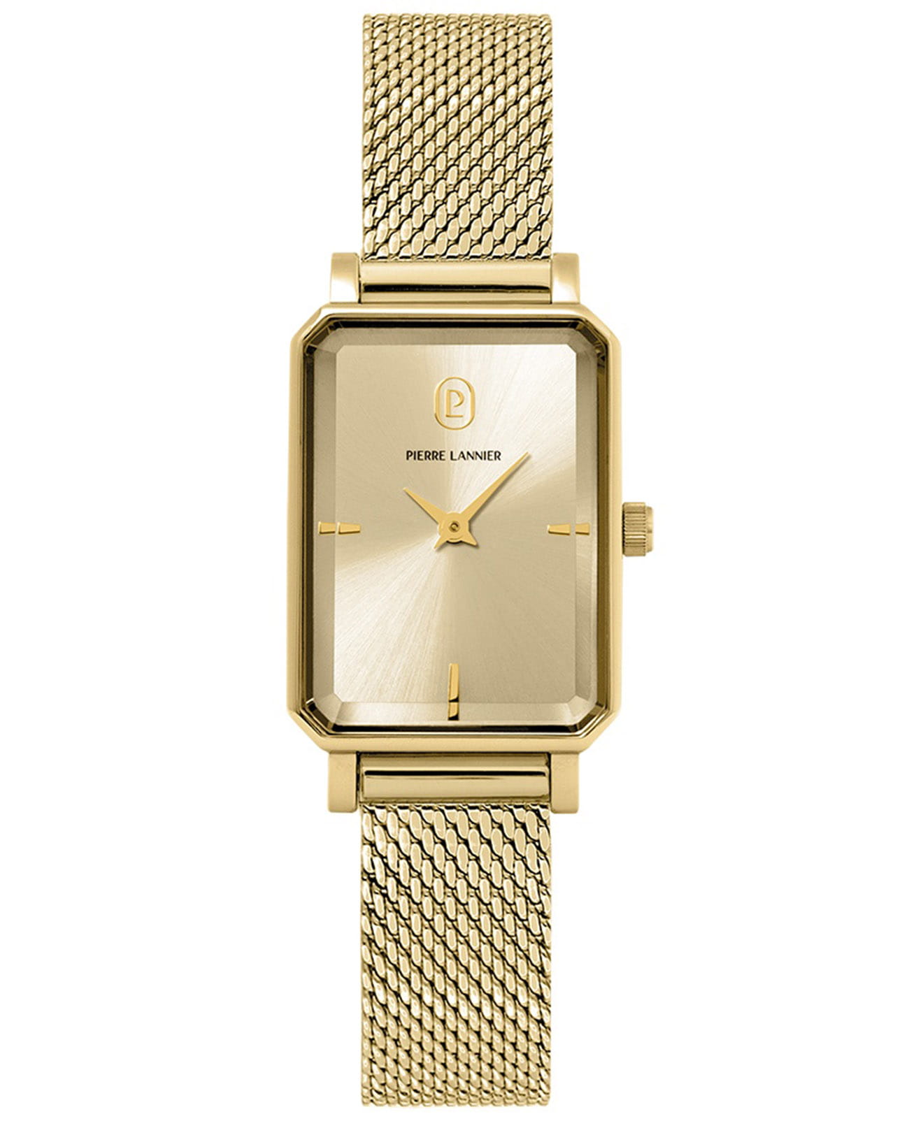 Женские кварцевые часы Pierre Lannier 006L542 — это стильный аксессуар, сочетающий элегантность французского дизайна с надёжностью и функциональностью. Модель выполнена в прямоугольной форме из нержавеющей стали с IP-покрытиемIP-покрытиеМетод ионного напыления. Демонстрирует повышенную устойчивость к истиранию, окислению и химическим веществам. Под воздействием высокого давления и температуры около 1500°C молекулы металла надёжно соединяются с частицами корпуса часов. цвета желтого золота, что придаёт ей благородный внешний вид и устойчивость к царапинам. Корпус имеет размеры 21x28,4 мм и толщину 7,8 мм, циферблат золотистого цвета. Защиту механизма обеспечивает минеральное стеклоМинеральное стеклоМинеральное стекло представляет собой искусственно выращенный минерал кварца. Такое стекло отличается особой устойчивостью к повреждениям и царапинам. Уступает по некоторым качествам сапфировому стеклу., устойчивое к мелким повреждениям. Стальной браслет с покрытием выполнен в технике миланского плетения и оснащён Раскладная застёжкаРаскладная застёжкаТакой тип застёжки используется только на браслетах из металла. Она никогда не раскрывается полностью, происходит разделение на 2 и более частей. Раскладывающая застёжка снизит вероятность потери часов к минимуму., что делает его удобным для ношения и подчёркивает качество исполнения. Водонепроницаемость позволяет использовать модель в повседневных условиях — при мытье рук или под лёгким дождём. Эти часы станут универсальным аксессуаром для тех, кто ценит сочетание стиля, качества и французского мастерства — идеальный выбор для повседневной носки и торжественных случаев.