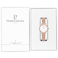 Женские кварцевые часы Pierre Lannier Nova 014J928. Центральные часовая и минутная стрелки. Белый циферблат. Круглый корпус выполнен из полированной нержавеющей стали с IP-покрытиемIP-покрытиеМетод ионного напыления. Демонстрирует повышенную устойчивость к истиранию, окислению и химическим веществам. Под воздействием высокого давления и температуры около 1500°C молекулы металла надёжно соединяются с частицами корпуса часов.. Стальной браслет выполнен в технике миланского плетения, раскладная застёжкаРаскладная застёжкаТакой тип застёжки используется только на браслетах из металла. Она никогда не раскрывается полностью, происходит разделение на 2 и более частей. Раскладывающая застёжка снизит вероятность потери часов к минимуму.. Прочное минеральное стеклоМинеральное стеклоМинеральное стекло представляет собой искусственно выращенный минерал кварца. Такое стекло отличается особой устойчивостью к повреждениям и царапинам. Уступает по некоторым качествам сапфировому стеклу., устойчивое к мелким механическим повреждениям. Водостойкость: 30 метров, позволит защитить корпус от случайных брызг или капель дождя.
