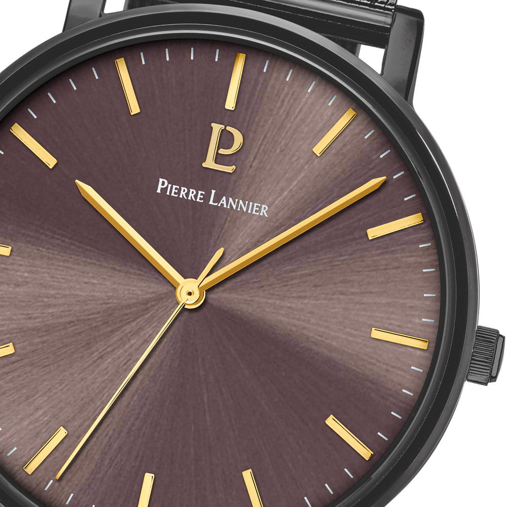 Мужские кварцевые часы Pierre Lannier 218F499 представляют собой стильный и надежный аксессуар с корпусом из нержавеющей стали, который отличается прочностью, устойчивостью к коррозии и царапинам, а также гипоаллергенными свойствами. Модель оснащена высокоточным кварцевым механизмом, не требующим регулярного завода и обеспечивающим стабильную работу. Циферблат защищен прочным минеральным стекломМинеральное стеклоМинеральное стекло представляет собой искусственно выращенный минерал кварца. Такое стекло отличается особой устойчивостью к повреждениям и царапинам. Уступает по некоторым качествам сапфировому стеклу., устойчивым к ударам и повседневным нагрузкам. Часы обладают водонепроницаемостью WR50 (5 бар), что позволяет использовать их при мытье рук, принятии душа или кратковременном плавании в бассейне. Часы поставляются в фирменной упаковке с официальной гарантией производителя на 2 года, что подтверждает их качество и надежность.