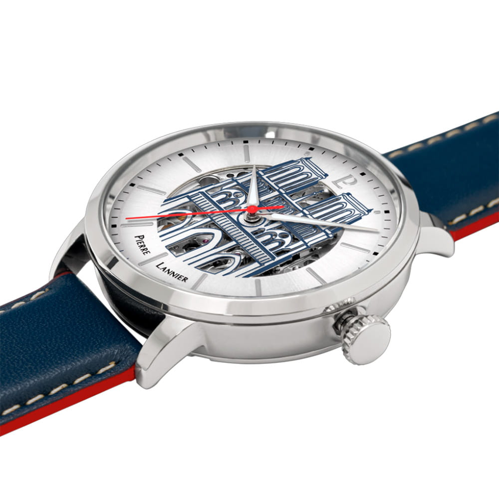 Мужские кварцевые часы Pierre Lannier 300A126 — элегантный дань французской архитектуре. Корпус из нержавеющей стали, диаметром 42 мм. Циферблат скелетонизированный — серый с изображением собора Нотр-Дам. Стрелки с люминесцентным покрытиемЛюминесцентное покрытиеПозволяет считывать показания времени в темноте. Производители наносят на стрелки, часовые индексы, безель или поверхность циферблата светонакопительный состав, дающий холодное свечение.. Стекло — минеральноеМинеральное стеклоМинеральное стекло представляет собой искусственно выращенный минерал кварца. Такое стекло отличается особой устойчивостью к повреждениям и царапинам. Уступает по некоторым качествам сапфировому стеклу., устойчивое к мелким повреждениям. Ремешок — синий кожаный на стандартной застёжке. Водонепроницаемость 50 м. Идеальный выбор для тех, кто ценит французский дизайн и культурное наследие.