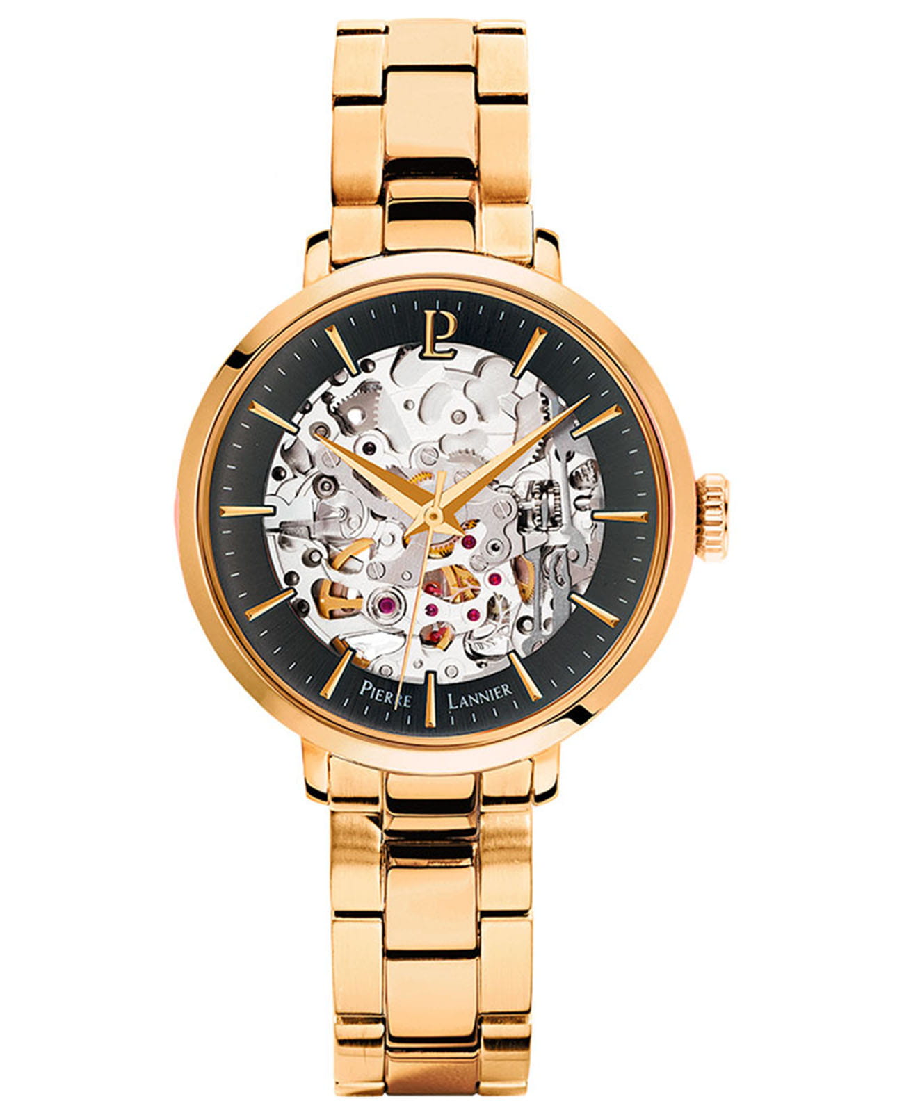 Женские механические часы с автоподзаводом Pierre Lannier Automatic 305D538. Минеральное стеклоМинеральное стеклоМинеральное стекло представляет собой искусственно выращенный минерал кварца. Такое стекло отличается особой устойчивостью к повреждениям и царапинам. Уступает по некоторым качествам сапфировому стеклу. устойчивое к мелким механическим повреждениям. Черный скелетонизированный циферблат. Центральные часовая, минутная и секундная стрелки. Корпус и браслет выполнен из нержавеющей стали с IP-покрытиемIP-покрытиеМетод ионного напыления. Демонстрирует повышенную устойчивость к истиранию, окислению и химическим веществам. Под воздействием высокого давления и температуры около 1500°C молекулы металла надёжно соединяются с частицами корпуса часов.. Водостойкость: 30 метров, позволит защитить корпус от случайных брызг или капель дождя. Стальной браслет с раскладной застёжкойРаскладная застёжкаТакой тип застёжки используется только на браслетах из металла. Она никогда не раскрывается полностью, происходит разделение на 2 и более частей. Раскладывающая застёжка снизит вероятность потери часов к минимуму..