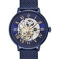 Мужские механические часы с автоподзаводом Pierre Lannier Automatic 318B468. Минеральное стеклоМинеральное стеклоМинеральное стекло представляет собой искусственно выращенный минерал кварца. Такое стекло отличается особой устойчивостью к повреждениям и царапинам. Уступает по некоторым качествам сапфировому стеклу. устойчивое к мелким механическим повреждениям. Центральные часовая, минутная и секундная стрелки. Корпус и браслет выполнены из нержавеющей стали с IP-покрытиемIP-покрытиеМетод ионного напыления. Демонстрирует повышенную устойчивость к истиранию, окислению и химическим веществам. Под воздействием высокого давления и температуры около 1500°C молекулы металла надёжно соединяются с частицами корпуса часов.. Водостойкость: 50 метров, позволит защитить корпус от случайных брызг или капель дождя. Стрелки с люминесцентным покрытиемЛюминесцентное покрытиеПозволяет считывать показания времени в темноте. Производители наносят на стрелки, часовые индексы, безель или поверхность циферблата светонакопительный состав, дающий холодное свечение.. Синий скелетонизированный циферблат. Браслет выполнен в технике миланского плетения на раскладной застёжкеРаскладная застёжкаТакой тип застёжки используется только на браслетах из металла. Она никогда не раскрывается полностью, происходит разделение на 2 и более частей. Раскладывающая застёжка снизит вероятность потери часов к минимуму.. Прозрачная задняя крышка.