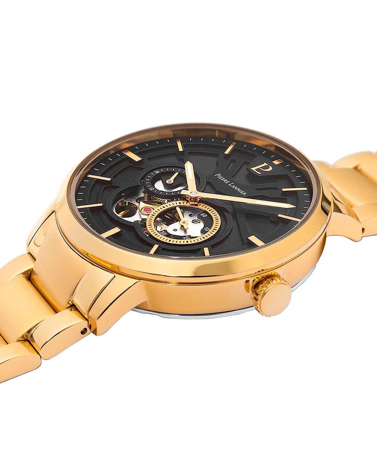 Мужские механические часы с автоподзаводом Pierre Lannier Trio 333D032. Минеральное стеклоМинеральное стеклоМинеральное стекло представляет собой искусственно выращенный минерал кварца. Такое стекло отличается особой устойчивостью к повреждениям и царапинам. Уступает по некоторым качествам сапфировому стеклу. устойчивое к мелким механическим повреждениям. Корпус выполнен из нержавеющей стали с IP-покрытиемIP-покрытиеМетод ионного напыления. Демонстрирует повышенную устойчивость к истиранию, окислению и химическим веществам. Под воздействием высокого давления и температуры около 1500°C молекулы металла надёжно соединяются с частицами корпуса часов.. Центральные часовая и минутная стрелки, секундная стрелка вынесена в малый циферблат. 12/24х часовой формат времени. Черный скелетонизированный циферблат. Стрелки с люминесцентным покрытиемЛюминесцентное покрытиеПозволяет считывать показания времени в темноте. Производители наносят на стрелки, часовые индексы, безель или поверхность циферблата светонакопительный состав, дающий холодное свечение.. Класс водозащиты: 50 метров, позволит защитить корпус от случайных брызг или капель дождя. Стальной браслет с IP-покрытиемIP-покрытиеМетод ионного напыления. Демонстрирует повышенную устойчивость к истиранию, окислению и химическим веществам. Под воздействием высокого давления и температуры около 1500°C молекулы металла надёжно соединяются с частицами корпуса часов. на раскладной застёжкеРаскладная застёжкаТакой тип застёжки используется только на браслетах из металла. Она никогда не раскрывается полностью, происходит разделение на 2 и более частей. Раскладывающая застёжка снизит вероятность потери часов к минимуму..