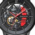 Pierre Lannier Paddock 344A459 — элегантная модель с выразительным спортивным характером. Корпус диаметром 43 мм выполнен из нержавеющей стали с матовым PVD-покрытиемPVDУльтратонкое покрытие наносится в технике вакуумного напыления, сочетает в себе нитрид титана особой прочности со слоем золота или оксида хрома. Несёт в себе декоративную или защитную функцию., подчёркивающим технологичный стиль и динамику дизайна. Циферблат частично скелетонизирован, открывая механизм и баланс, что придаёт модели техническую выразительность. Часовые метки и стрелки покрыты люминесцентным покрытиемЛюминесцентное покрытиеПозволяет считывать показания времени в темноте. Производители наносят на стрелки, часовые индексы, безель или поверхность циферблата светонакопительный состав, дающий холодное свечение., обеспечивая хорошую читаемость в любых условиях. Циферблат защищён прочным минеральным стекломМинеральное стеклоМинеральное стекло представляет собой искусственно выращенный минерал кварца. Такое стекло отличается особой устойчивостью к повреждениям и царапинам. Уступает по некоторым качествам сапфировому стеклу., устойчивым к царапинам и повседневным воздействиям. Водонепроницаемость до 50 метров позволяет использовать часы в различных жизненных ситуациях без ограничений. Внутри — автоматический механизм с автоподзаводом, не требующий подзарядки при регулярном ношении. Стальной браслет с PVD-покрытиемPVDУльтратонкое покрытие наносится в технике вакуумного напыления, сочетает в себе нитрид титана особой прочности со слоем золота или оксида хрома. Несёт в себе декоративную или защитную функцию. на раскладной застёжкеРаскладная застёжкаТакой тип застёжки используется только на браслетах из металла. Она никогда не раскрывается полностью, происходит разделение на 2 и более частей. Раскладывающая застёжка снизит вероятность потери часов к минимуму. обеспечивающей комфорт и надёжную фиксацию. Paddock — гармоничное сочетание механики, изящества и современного дизайна, созданное для тех, кто ценит уверенность и индивидуальность в деталях.