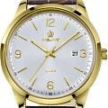 Poljot 2315.586200 — элегантные кварцевые мужские часы, объединяющие лаконичный дизайн и повседневную универсальность. Корпус из нержавеющей стали с PVD-покрытиемPVDУльтратонкое покрытие наносится в технике вакуумного напыления, сочетает в себе нитрид титана особой прочности со слоем золота или оксида хрома. Несёт в себе декоративную или защитную функцию. подчёркивает строгость линий и сдержанную эстетику, а глубокий циферблат с аккуратным гильоше и арабскими цифрами создаёт гармоничное визуальное равновесие. Тонкие золотистые стрелки с люминесцентным покрытиемЛюминесцентное покрытиеПозволяет считывать показания времени в темноте. Производители наносят на стрелки, часовые индексы, безель или поверхность циферблата светонакопительный состав, дающий холодное свечение. обеспечивают лёгкость восприятия времени, а окно даты на позиции «3 часа» добавляет практичности. Прочное минеральное стеклоМинеральное стеклоМинеральное стекло представляет собой искусственно выращенный минерал кварца. Такое стекло отличается особой устойчивостью к повреждениям и царапинам. Уступает по некоторым качествам сапфировому стеклу. защищает циферблат от мелких повреждений, а ремешок из натуральной кожи с фактурой крокодила обеспечивает комфорт и элегантное прилегание к запястью. Poljot — это часы для мужчин, ценящих точность, простоту и утончённый повседневный стиль.
