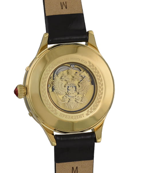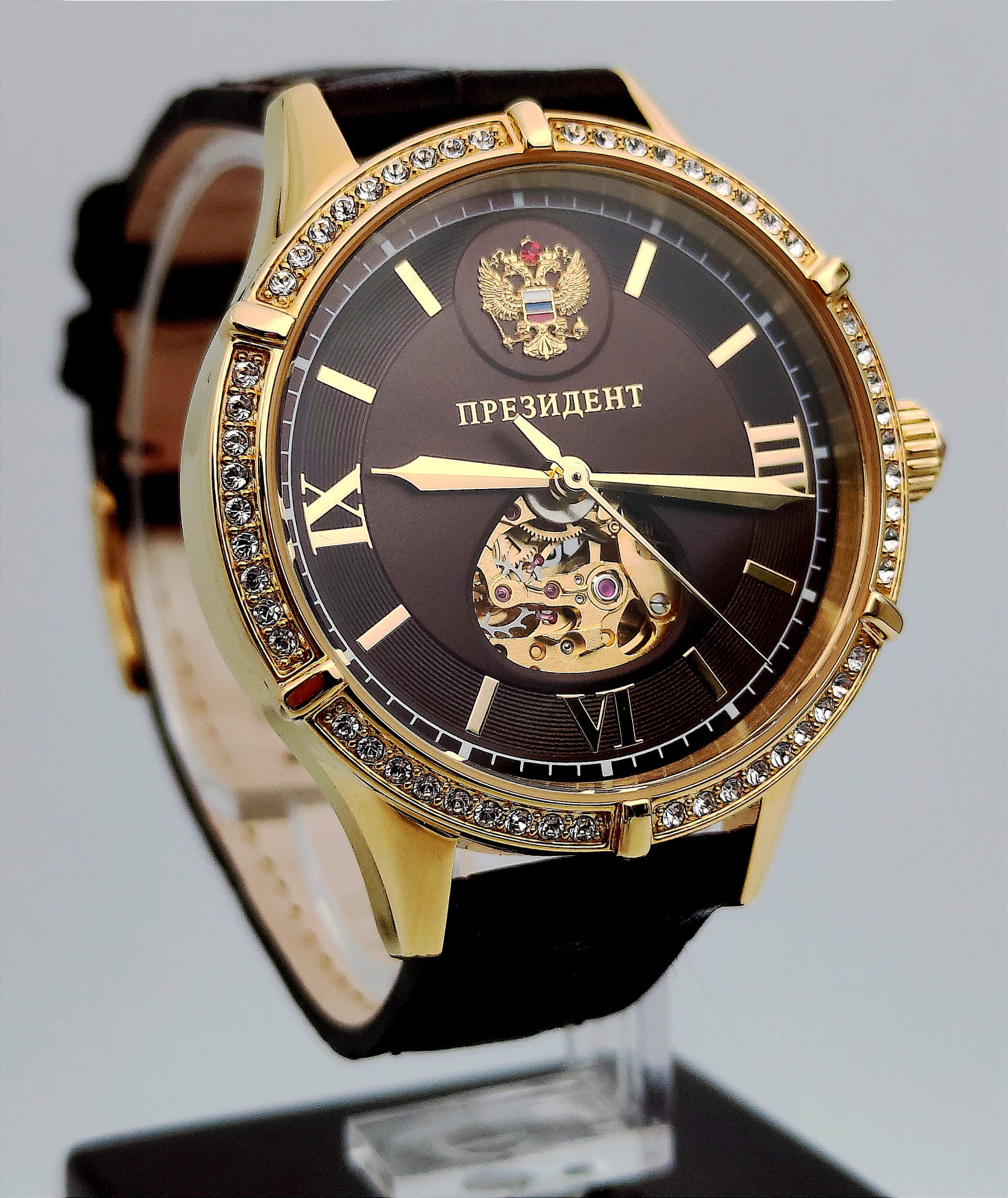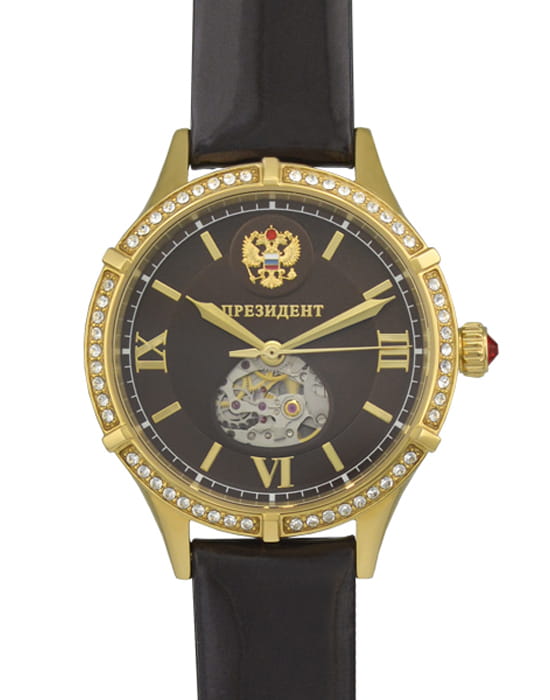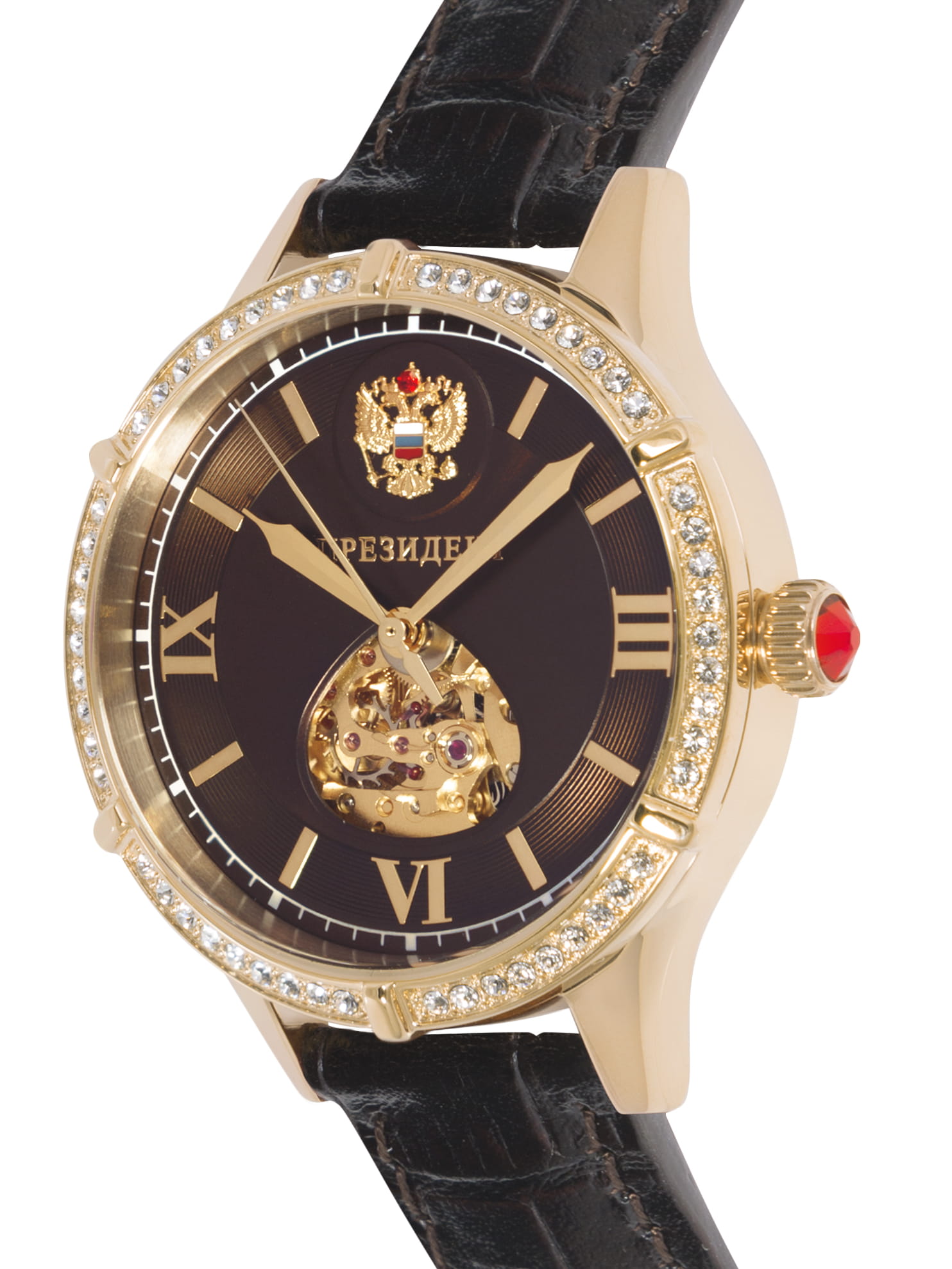 Часы «Президент» модели 4616160 — это женские механические наручные часы с автоподзаводом, сочетающие элегантный дизайн и надёжность. Механизм: японский механизм Miyota 6T28 с автоподзаводом, обеспечивающий точность и долговечность. Функции: часы, минуты, секунды. Корпус: из нержавеющей стали с PVD-покрытиемPVDУльтратонкое покрытие наносится в технике вакуумного напыления, сочетает в себе нитрид титана особой прочности со слоем золота или оксида хрома. Несёт в себе декоративную или защитную функцию., диаметром 36 мм инкрустирован кристаллами. Стекло: минеральноеМинеральное стеклоМинеральное стекло представляет собой искусственно выращенный минерал кварца. Такое стекло отличается особой устойчивостью к повреждениям и царапинам. Уступает по некоторым качествам сапфировому стеклу., устойчивое к царапинам. Водонепроницаемость: 3 ATM (30 метров), защищает от случайных брызг и дождя. Ремешок: кожаный, обеспечивающий комфорт при ношении. Эти часы идеально подойдут для женщин, ценящих сочетание стиля и функциональности.
