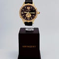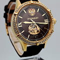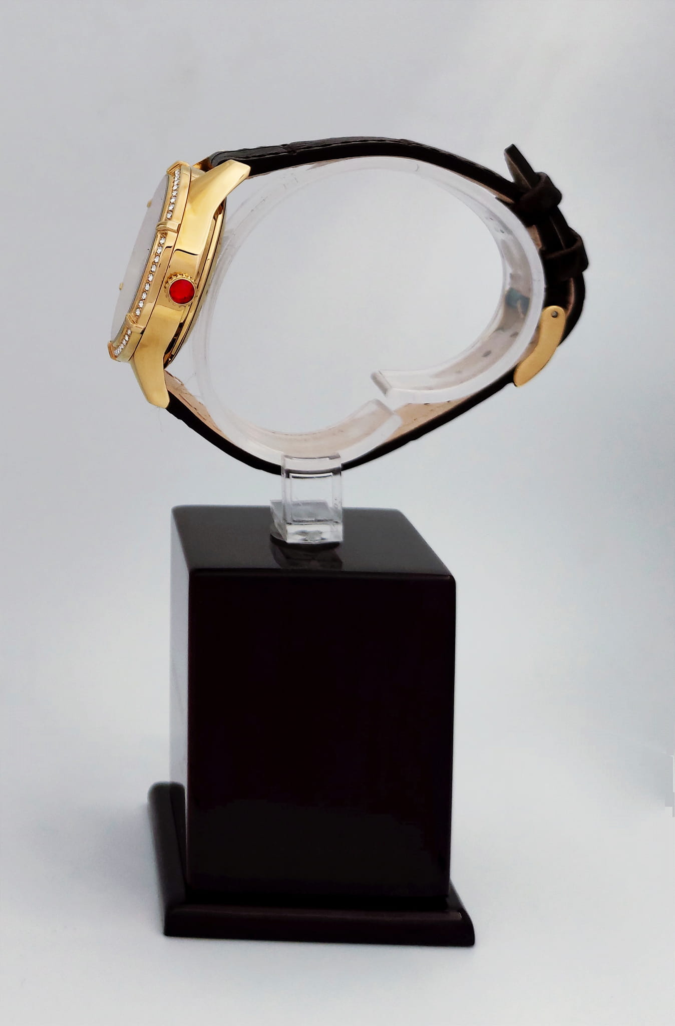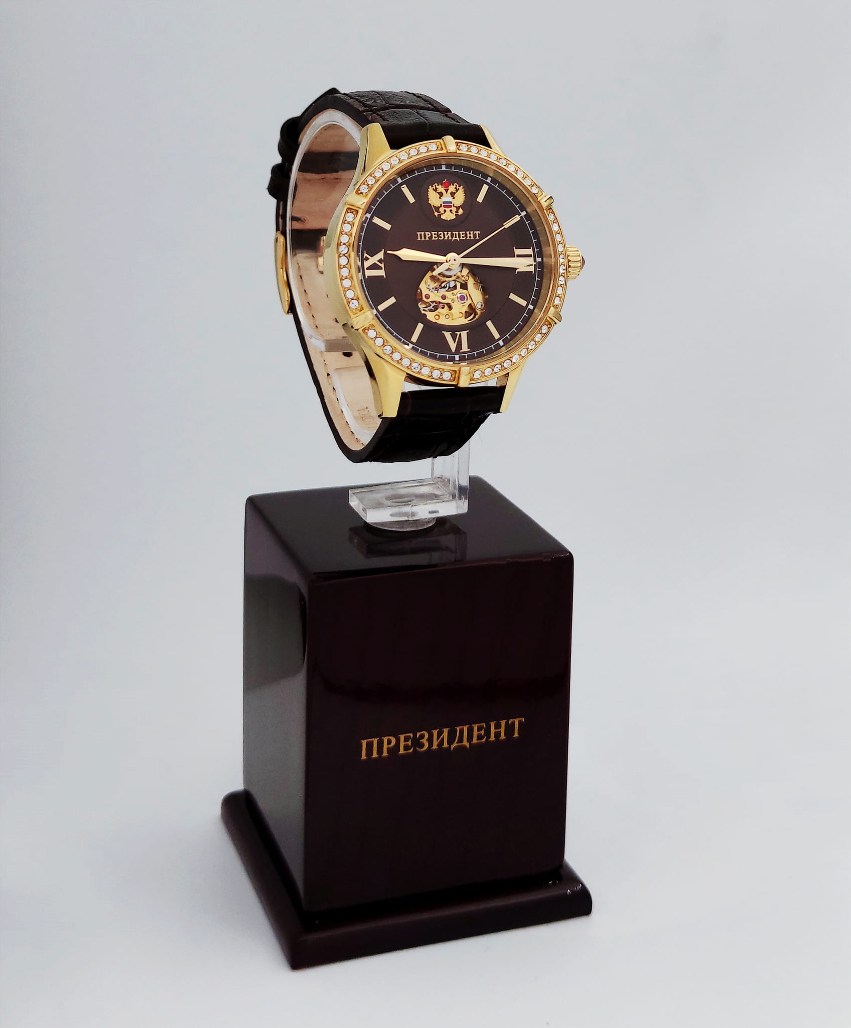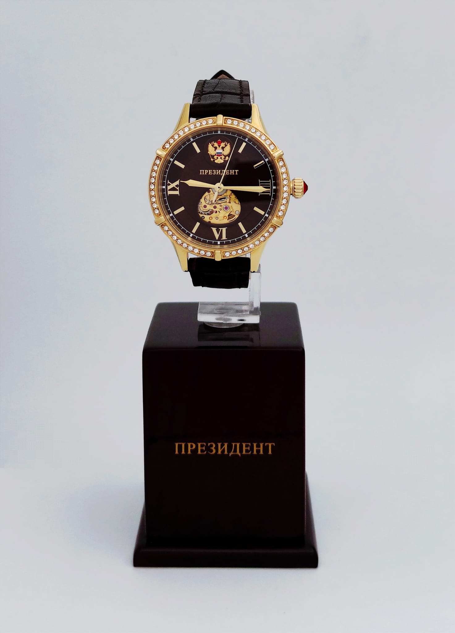 Часы «Президент» модели 4616160 — это женские механические наручные часы с автоподзаводом, сочетающие элегантный дизайн и надёжность. Механизм: японский механизм Miyota 6T28 с автоподзаводом, обеспечивающий точность и долговечность. Функции: часы, минуты, секунды. Корпус: из нержавеющей стали с PVD-покрытиемPVDУльтратонкое покрытие наносится в технике вакуумного напыления, сочетает в себе нитрид титана особой прочности со слоем золота или оксида хрома. Несёт в себе декоративную или защитную функцию., диаметром 36 мм инкрустирован кристаллами. Стекло: минеральноеМинеральное стеклоМинеральное стекло представляет собой искусственно выращенный минерал кварца. Такое стекло отличается особой устойчивостью к повреждениям и царапинам. Уступает по некоторым качествам сапфировому стеклу., устойчивое к царапинам. Водонепроницаемость: 3 ATM (30 метров), защищает от случайных брызг и дождя. Ремешок: кожаный, обеспечивающий комфорт при ношении. Эти часы идеально подойдут для женщин, ценящих сочетание стиля и функциональности.