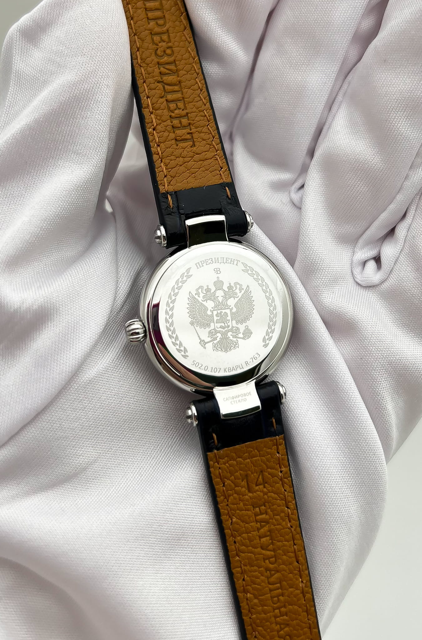 Часы «Президент» модели 5020107 — это женские кварцевые наручные часы, сочетающие винтажный стиль и современную функциональность. Механизм: кварцевый, обеспечивающий высокую точность хода. Функции: часы и минуты. Корпус: из нержавеющей стали, придающим часам элегантный вид. Циферблат: декорирован узором в винтажном стиле, подчёркивающим изысканность модели. Стекло: сапфировое стеклоСапфировое стеклоПрочный и надёжный материал из кристалла сапфира синтетического происхождения, характеризующийся особой твёрдостью и устойчивостью к царапинам и повреждениям., устойчивое к царапинам. Ремешок: кожаный, обеспечивающий комфорт при ношении. Эти часы идеально подойдут для женщин, ценящих сочетание классического дизайна и современных технологий.