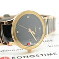 Наручные часы представляют собой воплощение классики и лаконичного дизайна, это идеальный вариант для поддержания солидного имиджа. Они выполнены из нержавеющей стали и высокотехнологичной керамикиВысокотехнологичная керамикаИнновационный запатентованный Rado материал с гладкой или матовой поверхностью. Керамика за счёт кристаллической структуры обладает повышенной устойчивостью от возникновения царапин. Материал способен принимать температуру тела человека, обеспечивая невероятный комфорт при ношении., чёрные вставки привлекательно смотрятся. Минималистичный циферблат инкрустирован 4 бриллиантами в 0,009 карат. Кварцевый калибр ETA 956.112 с высокой точностью хода. Золотистое PVD-покрытиеPVDУльтратонкое покрытие наносится в технике вакуумного напыления, сочетает в себе нитрид титана особой прочности со слоем золота или оксида хрома. Несёт в себе декоративную или защитную функцию.. Сапфировое стекло противостоит образованию царапин на поверхности. Диаметр корпуса: 28 мм.